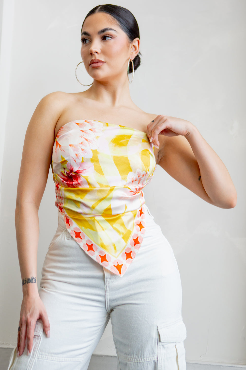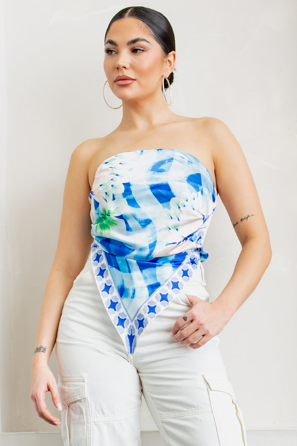 Leopard Strapless Satin Effect Scarf Top & Pants Set