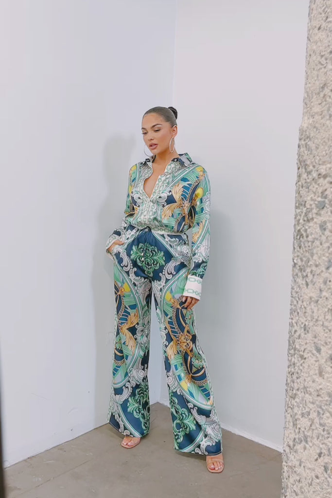 PLUNGE NECK LONG SLEEVE MIDI DRESS