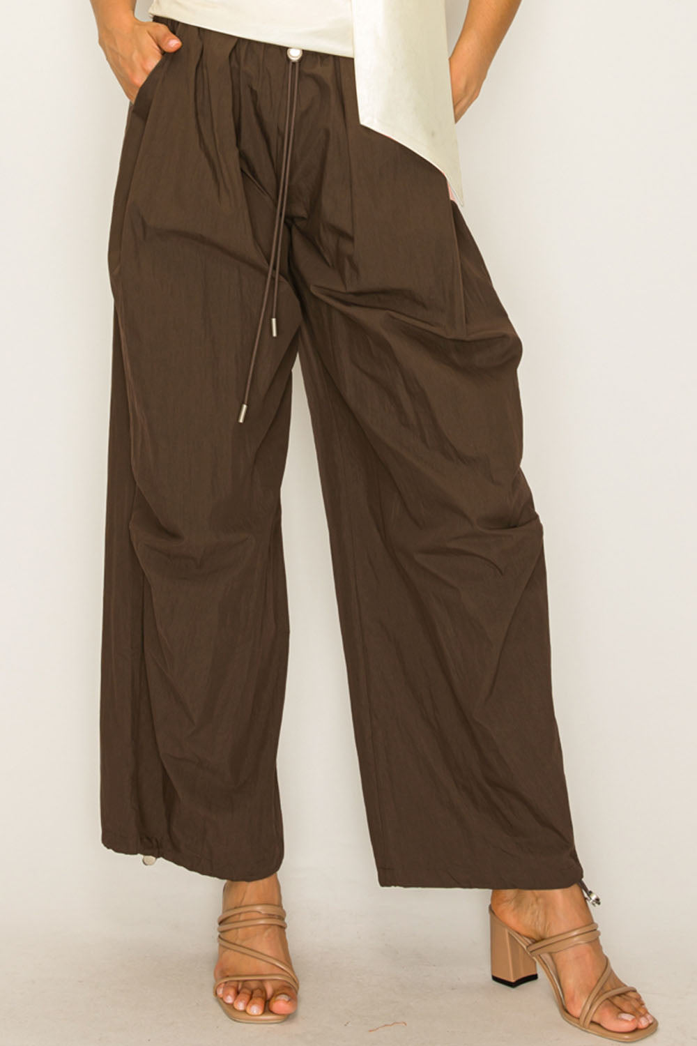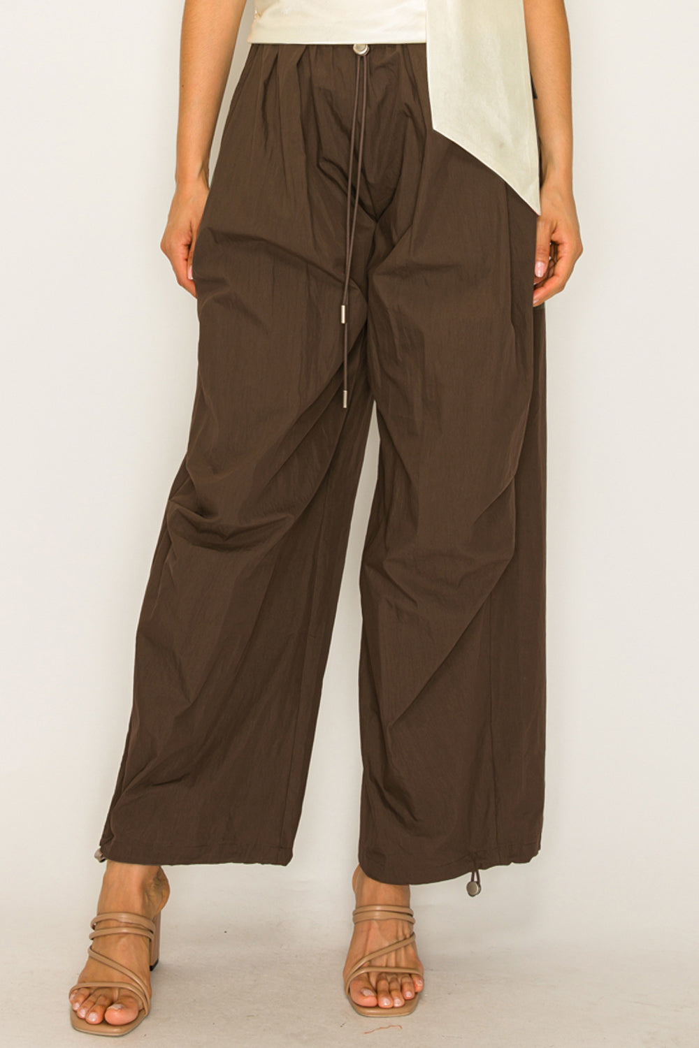 Crinkled Wide-Leg Pants with Drawcord Hem