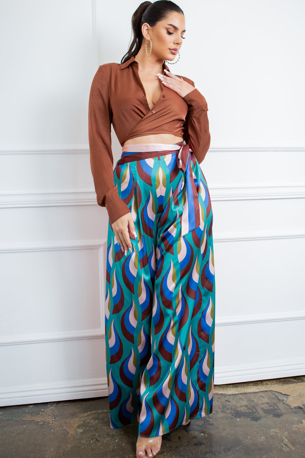 Wide Pants with Scarf Belt
