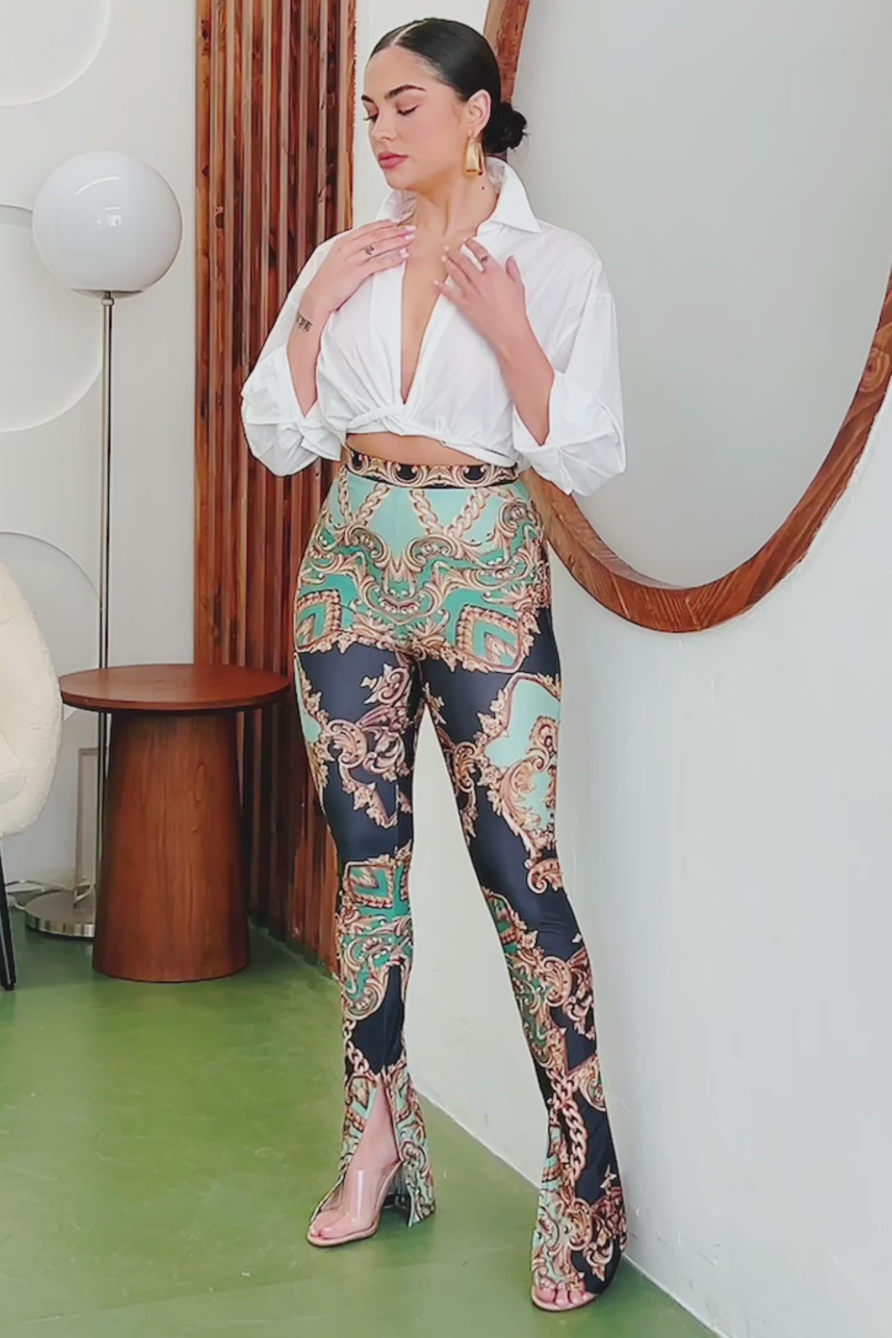 leggings style bell bottom high waist pants with side slits