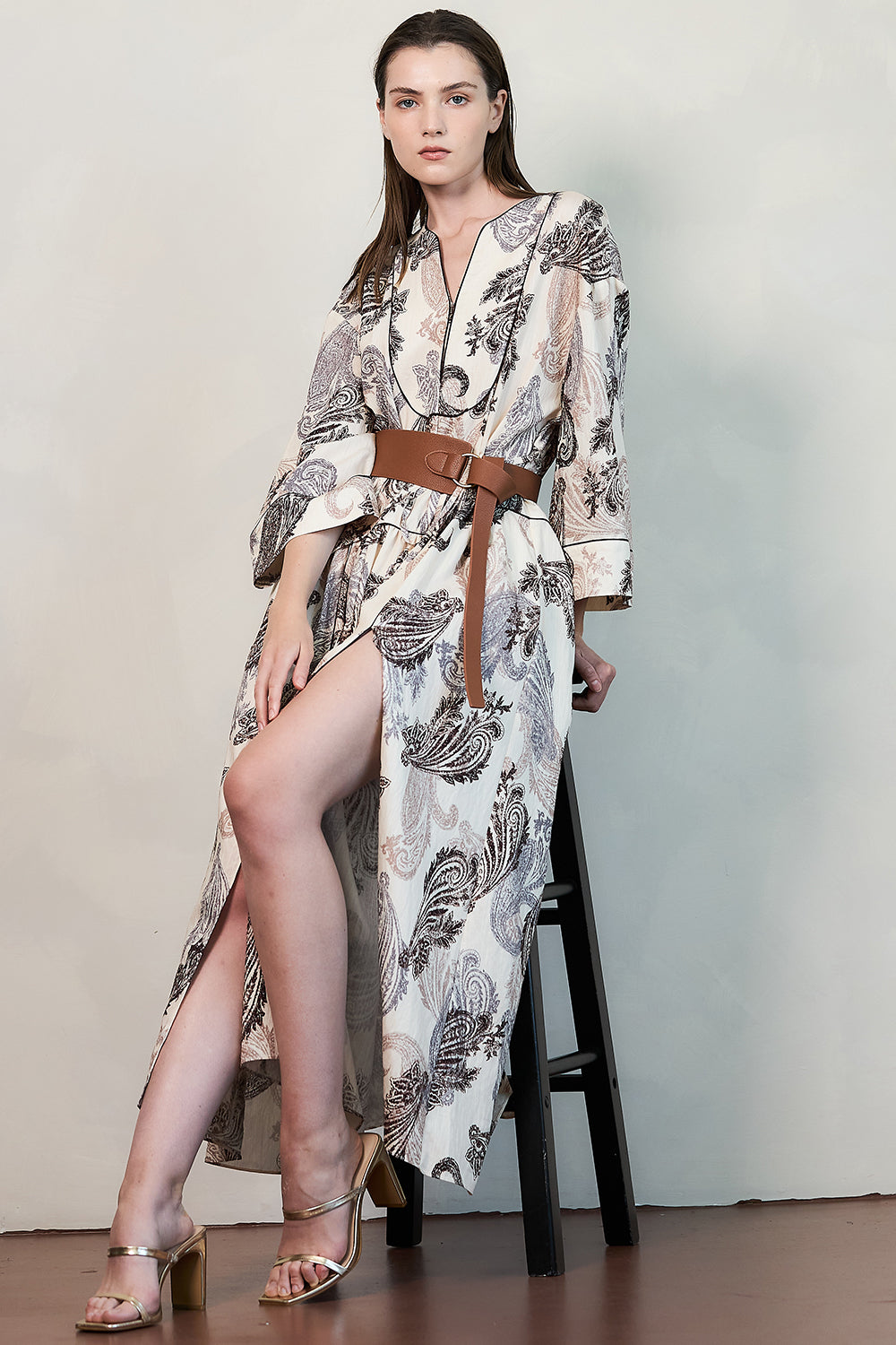 - Self-tie belt at the waist for adjustable fit
