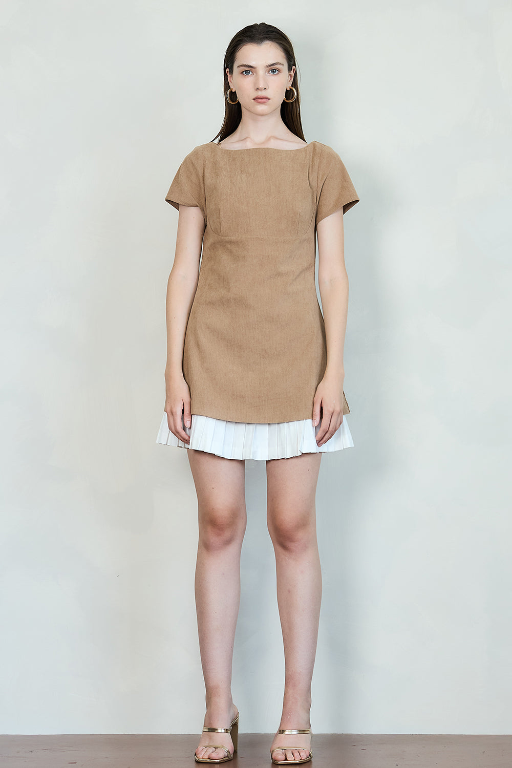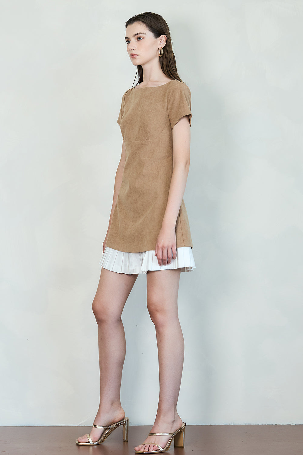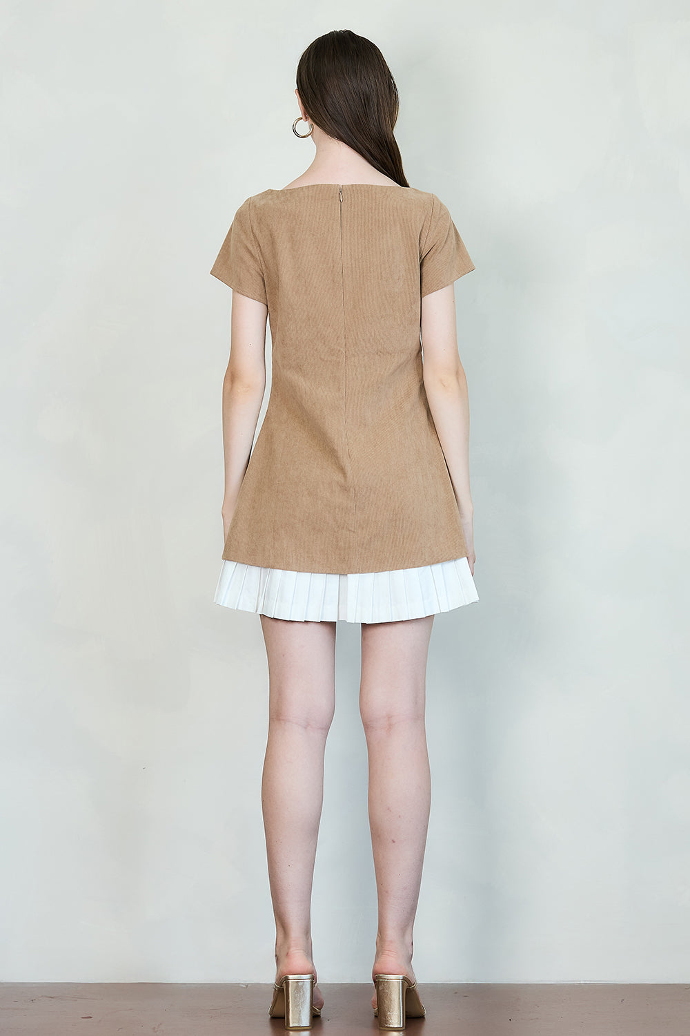 Corduroy Mini Dress with Pleated Ruffle Hem