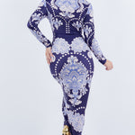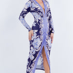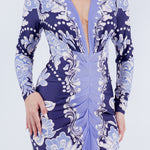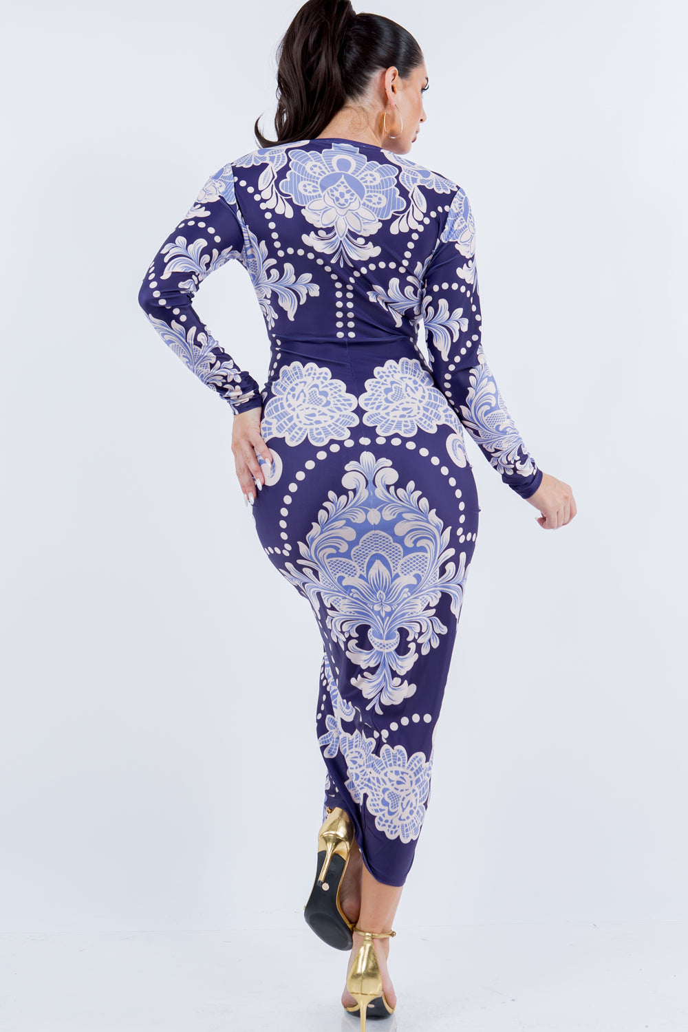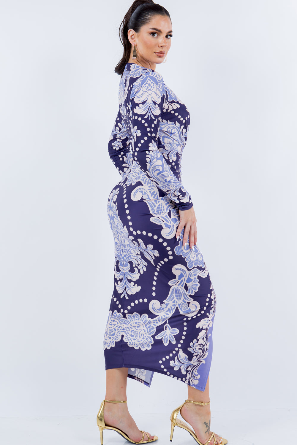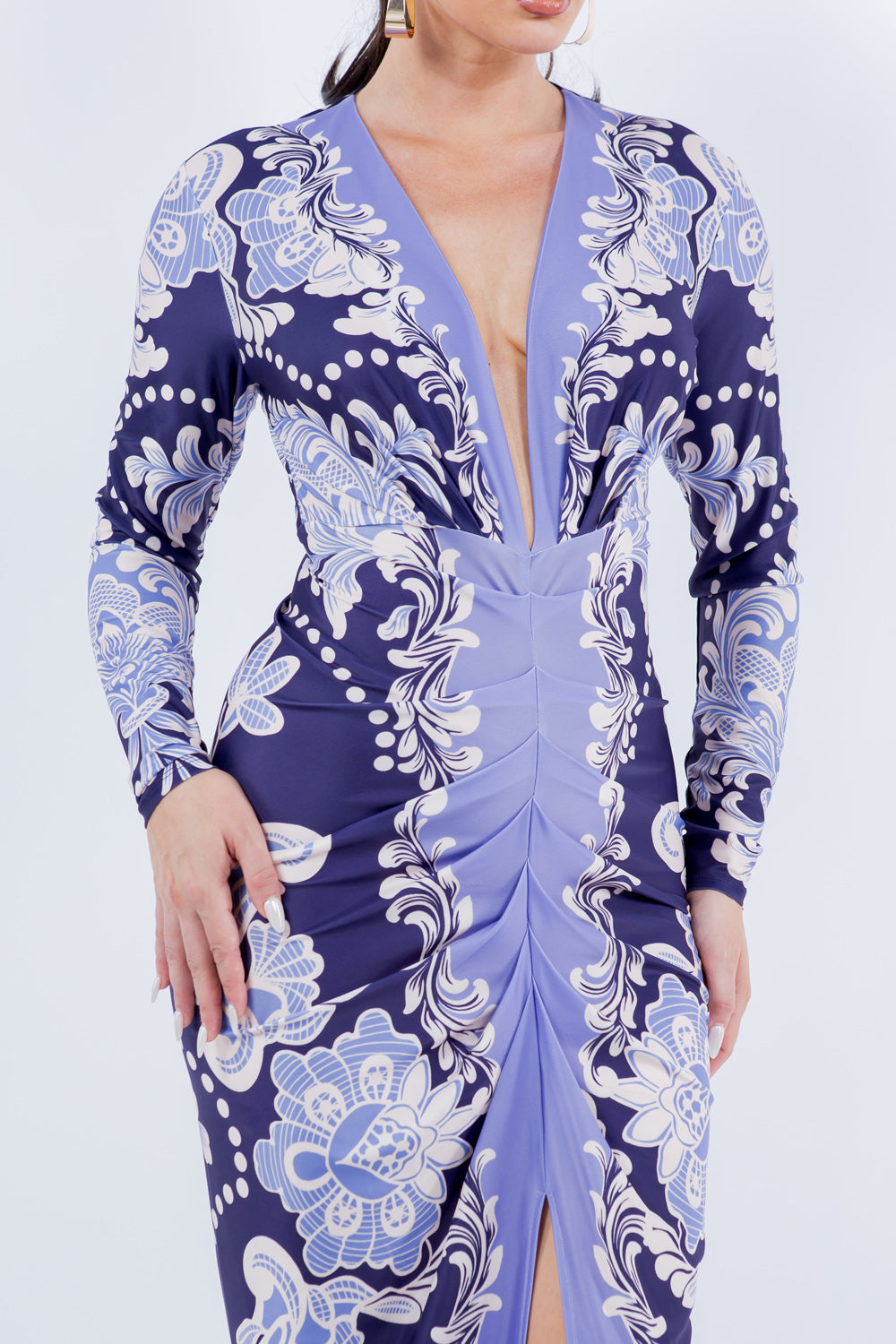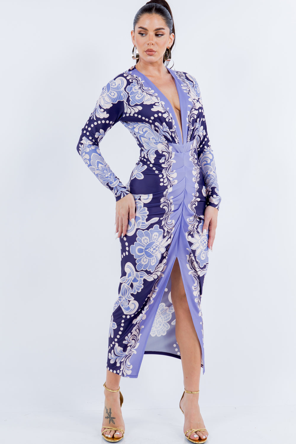 DEEP V NECK LONG SLEEVE MIDI DRESS