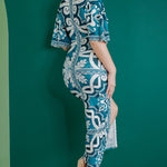 Front Ruched V-Neck Midi Dress