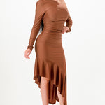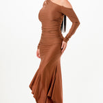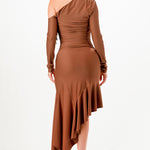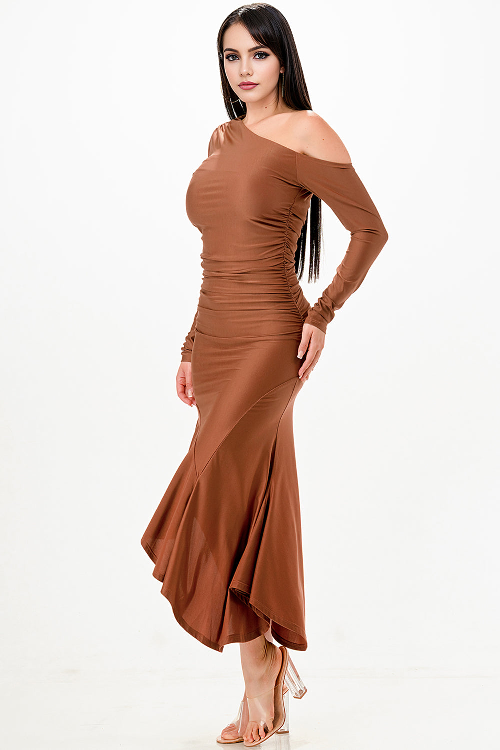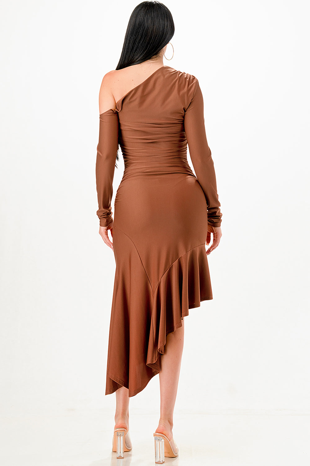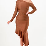 Long Sleeve Off The Shoulder Asymmetric Slim Midi Dress