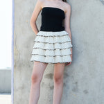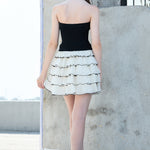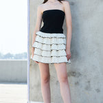 Ribbed Strapless Top & Layered Ruffle Mini Dress