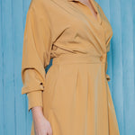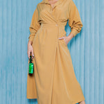 Collared Wrap Style Midi Dress