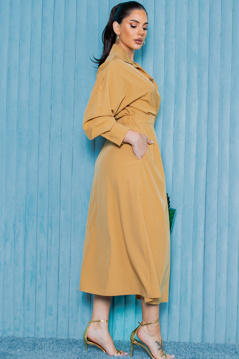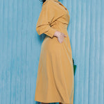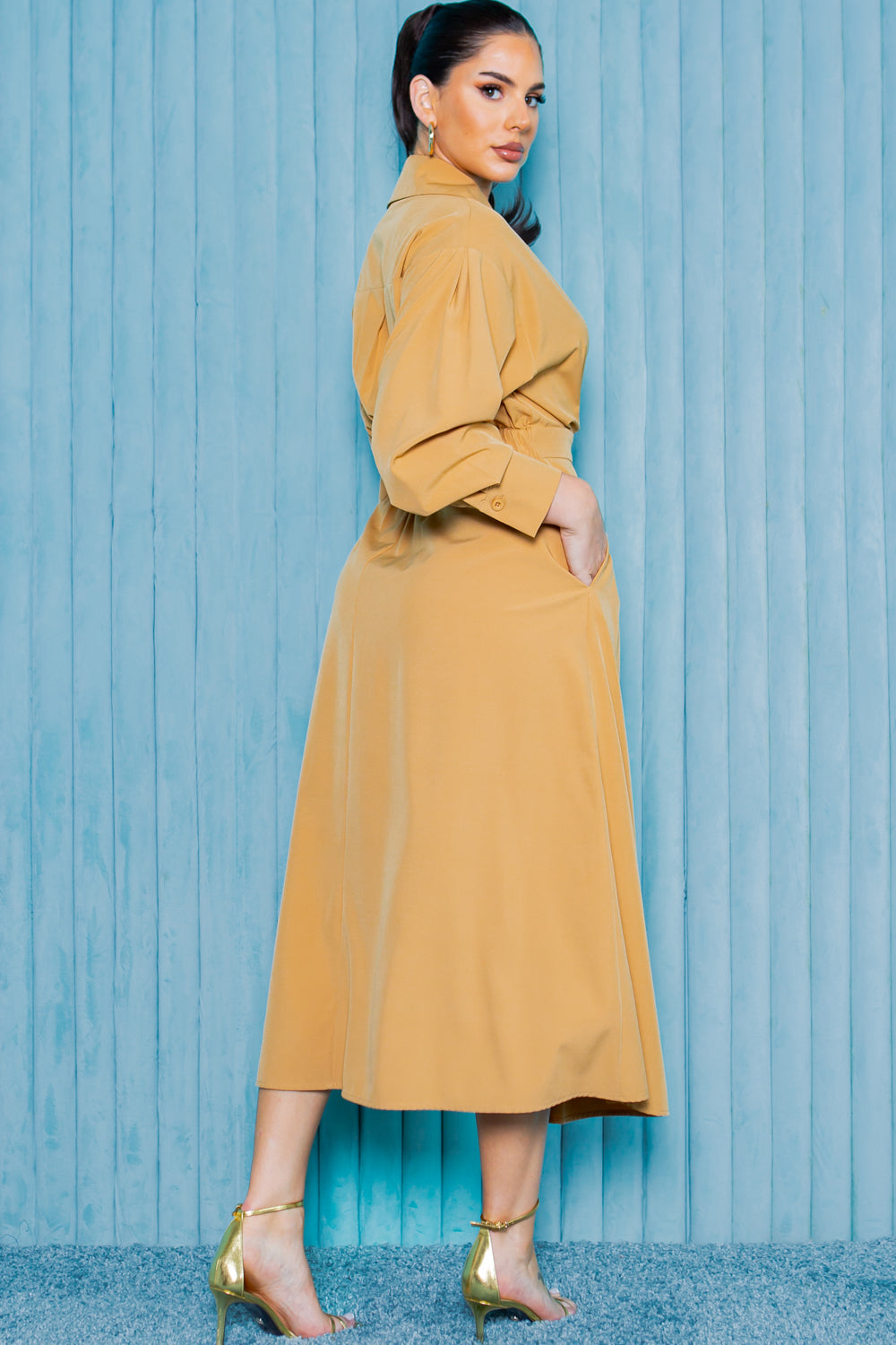 - Long sleeve midi length dress with collar