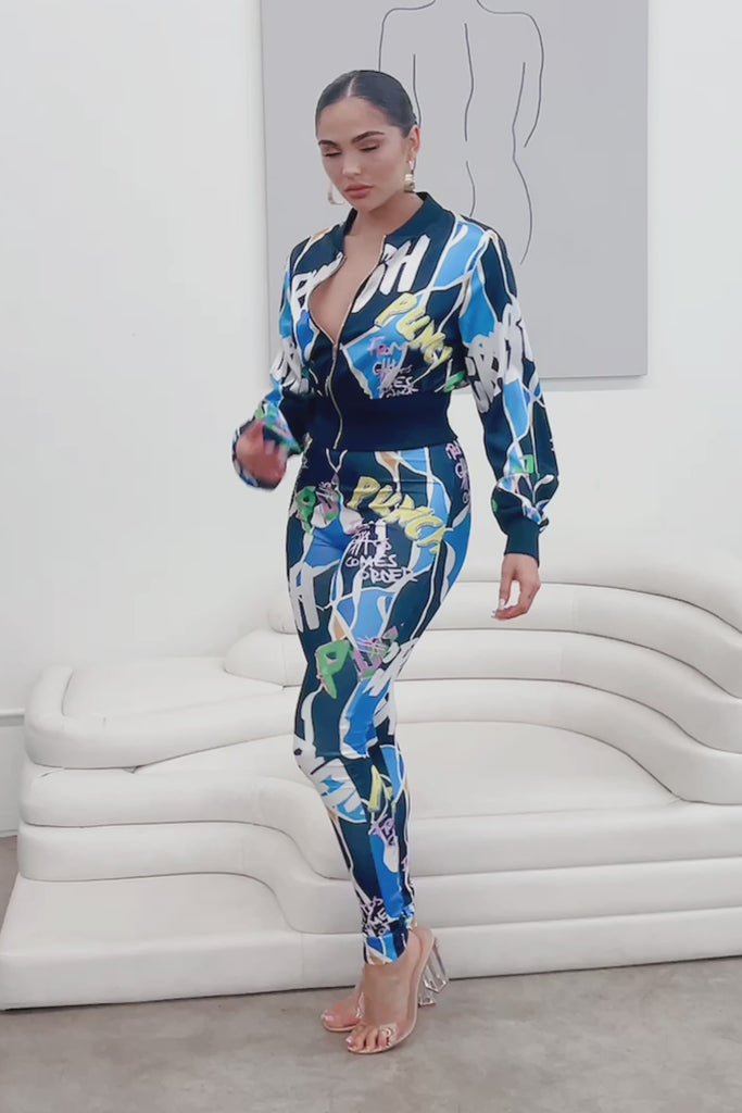 Graffiti Denim Effect Crop Jacket (JACKET ONLY)