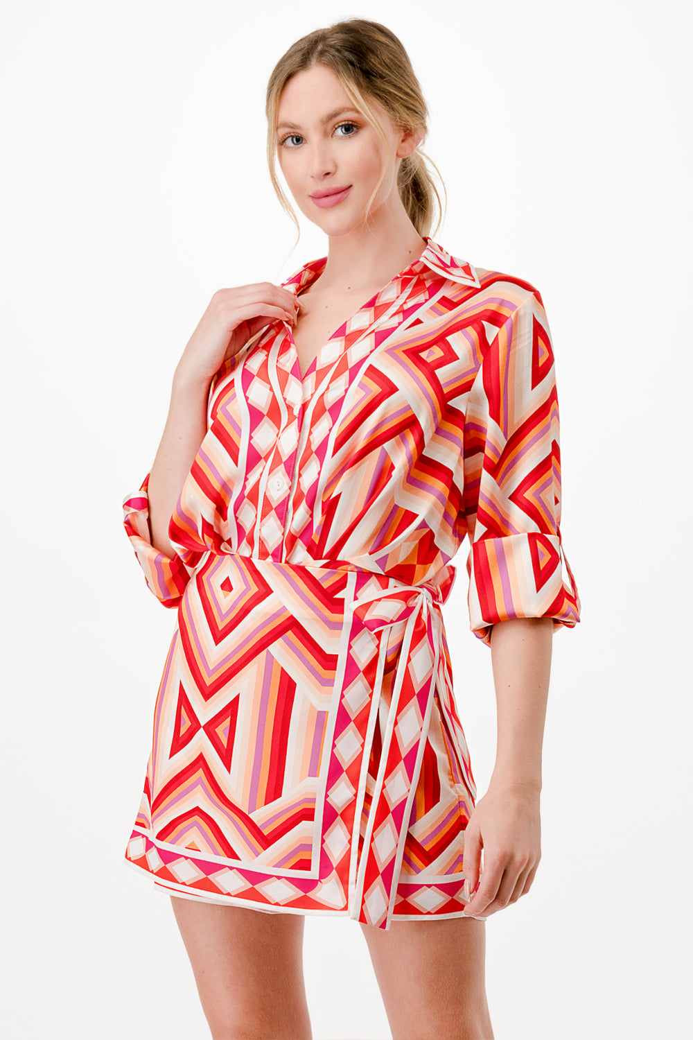 Multi-Colored Draped Asymmetrical Shoulder Romper