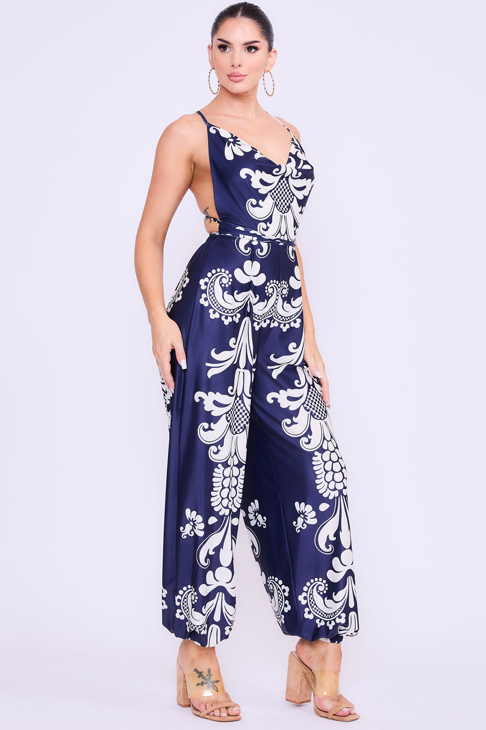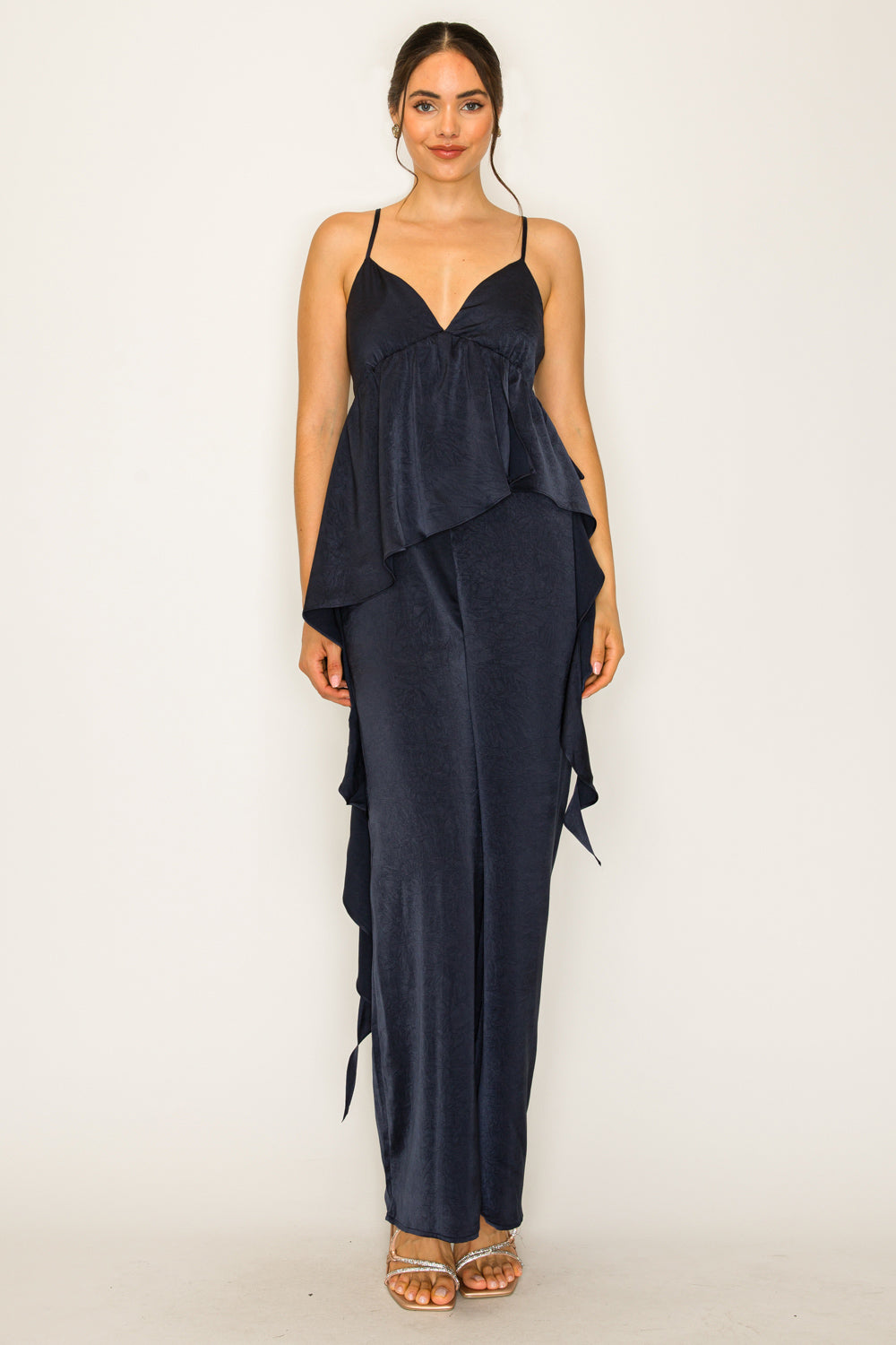 Satin Open Back One Shoulder Wide Leg Jumpsuit