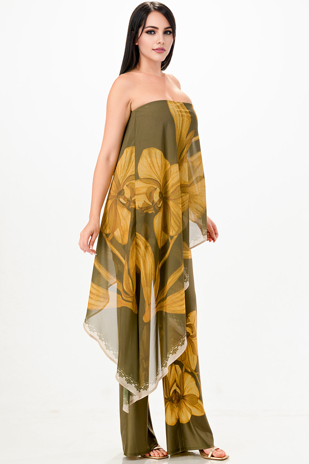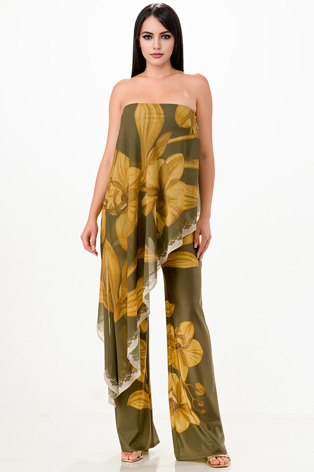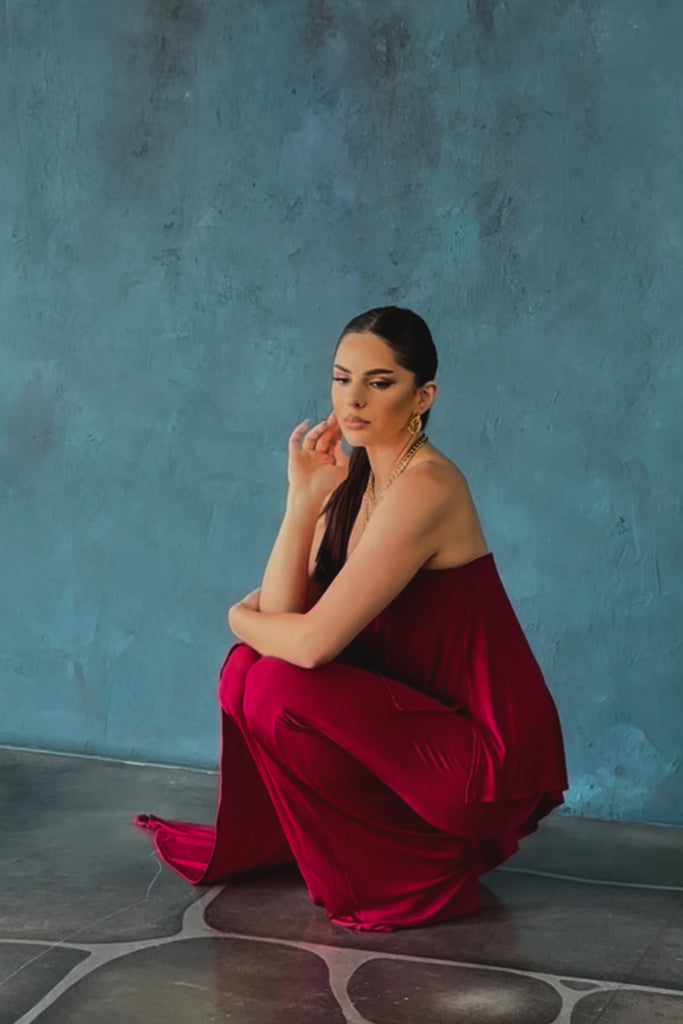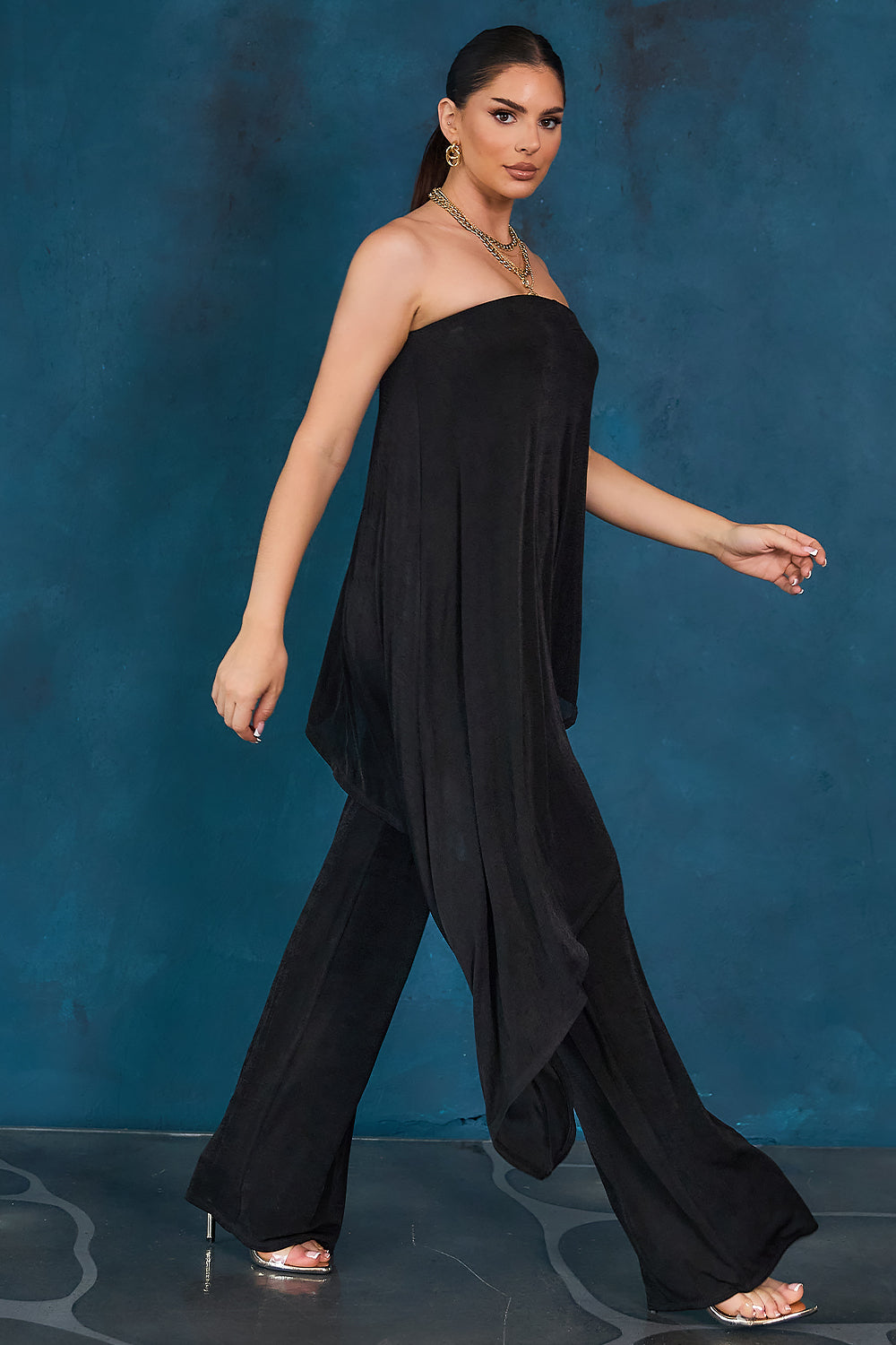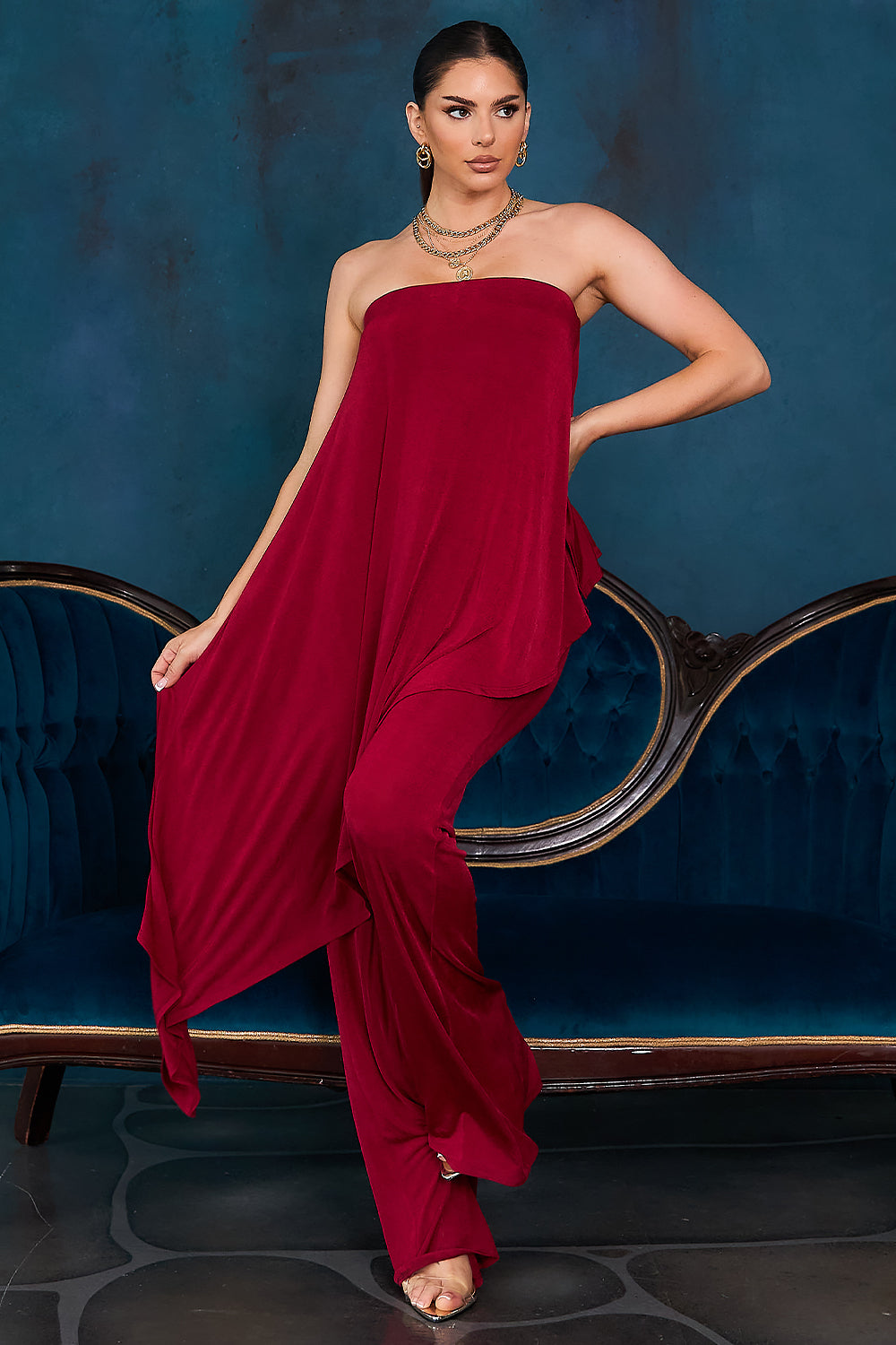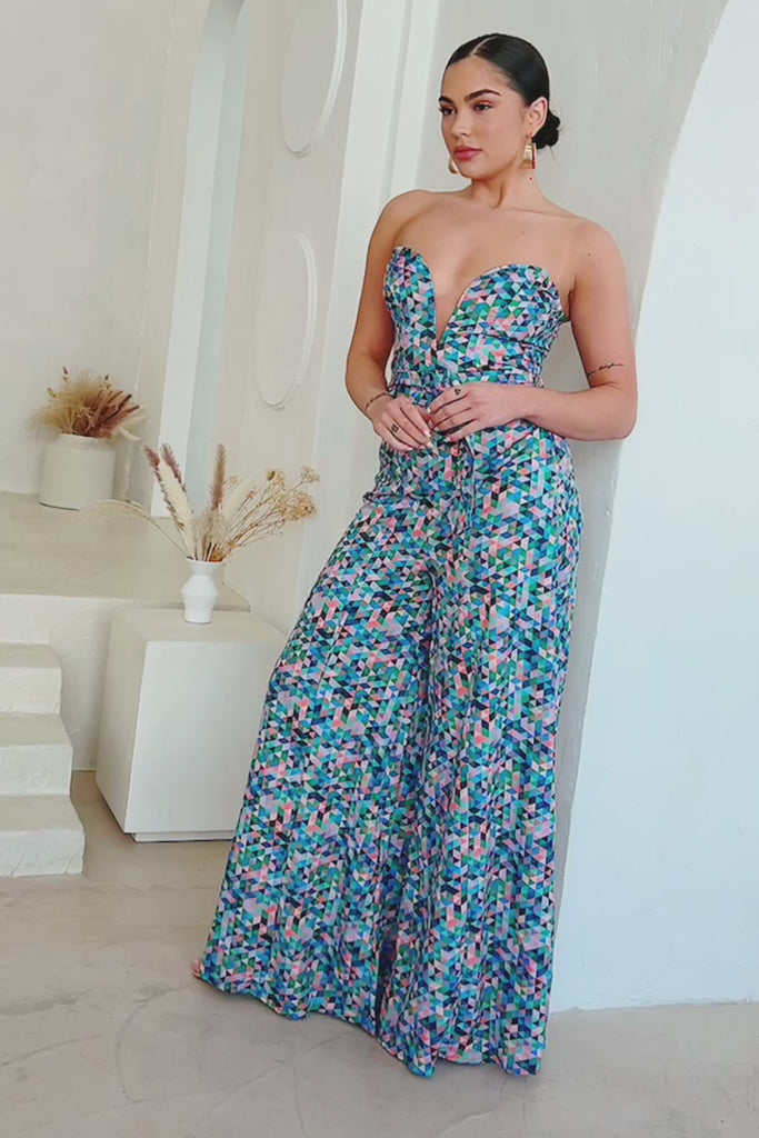 Strapless Deep V Bustier Style Wide Leg Jumpsuit