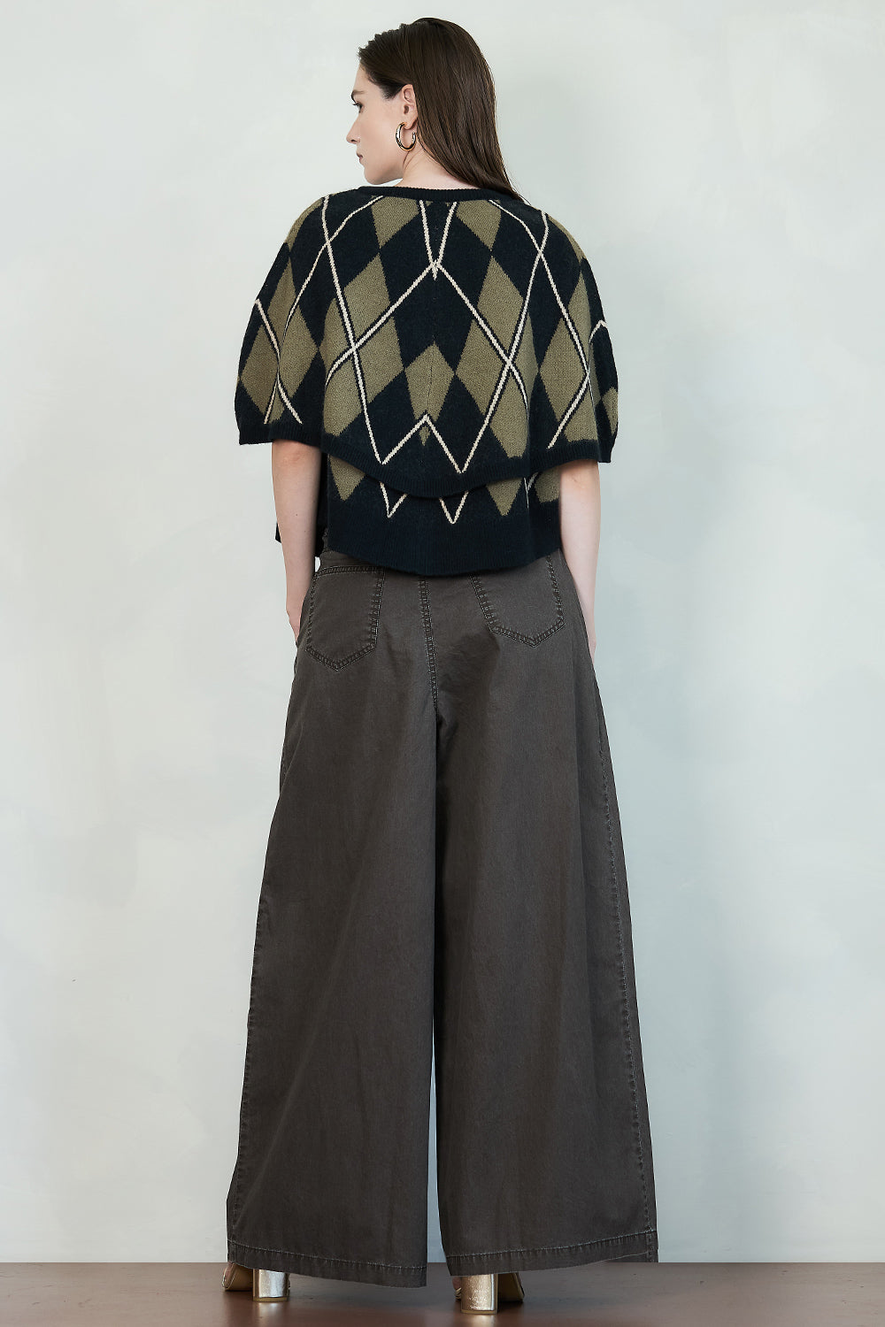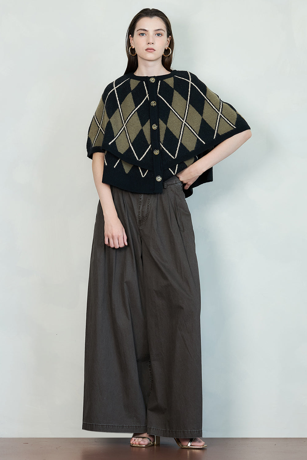 Argyle Knit Button-Up Poncho (TOP ONLY)