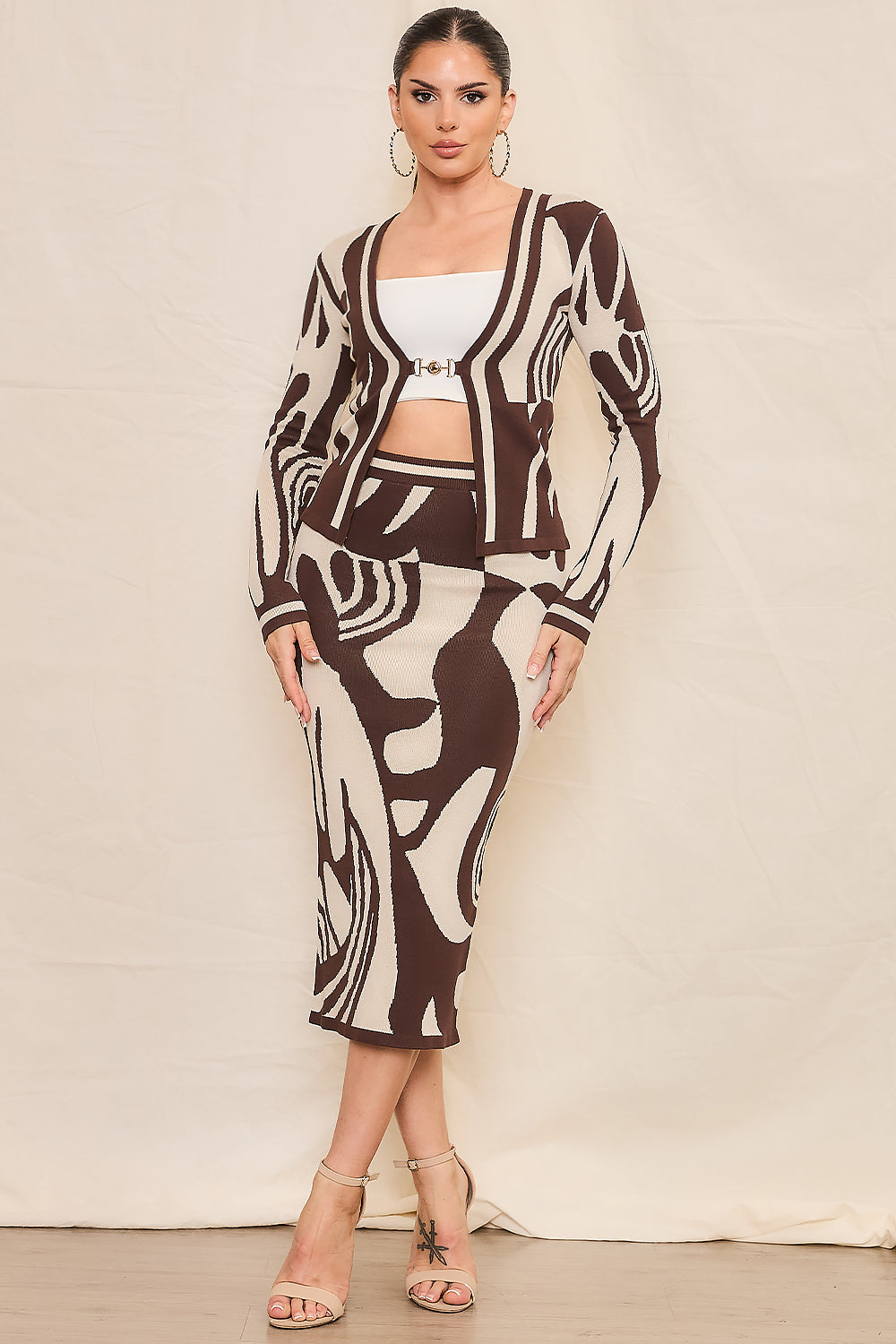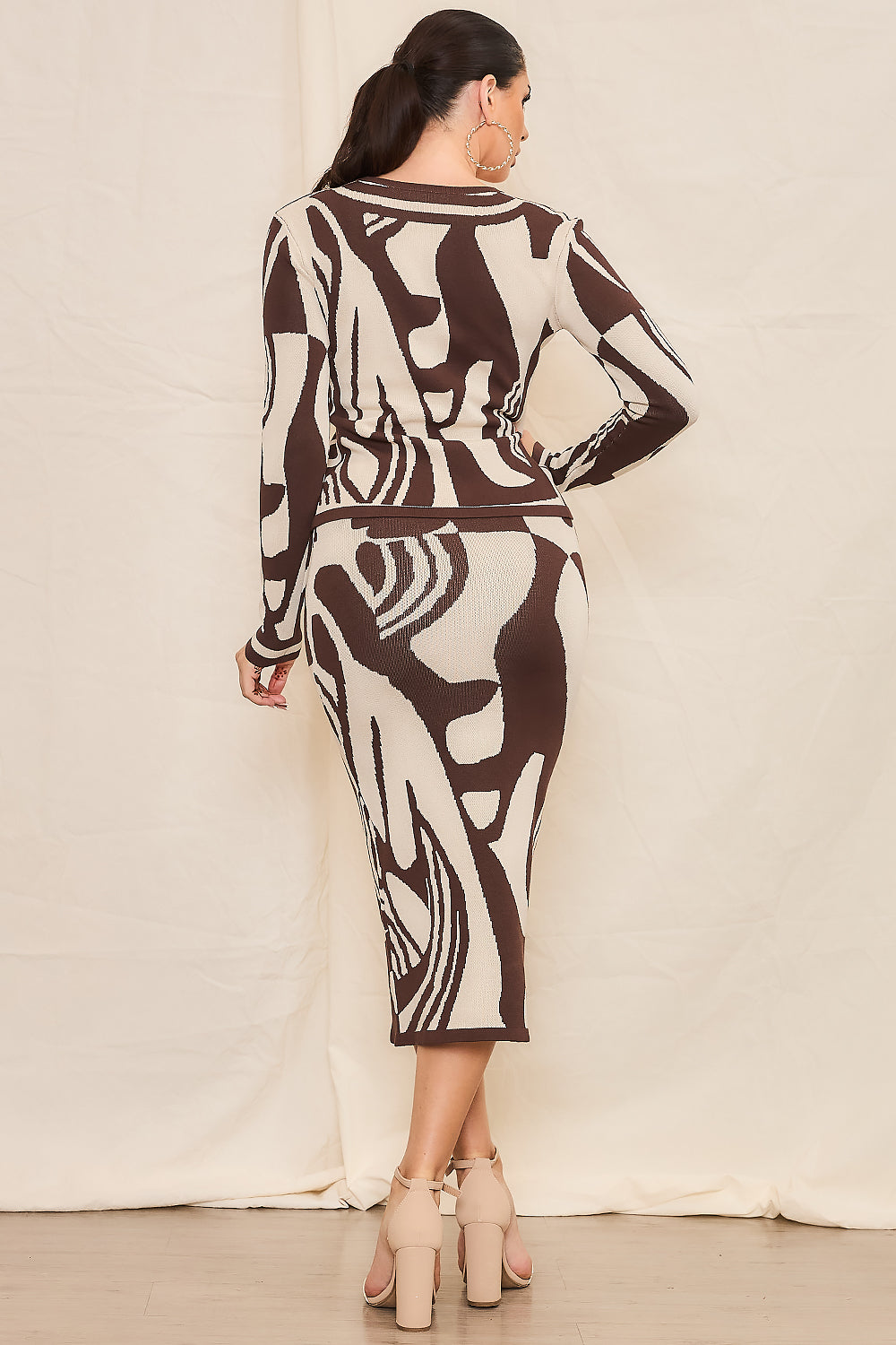 Jacquard Pencil Shape Sweater Midi Skirt (SKIRT ONLY)