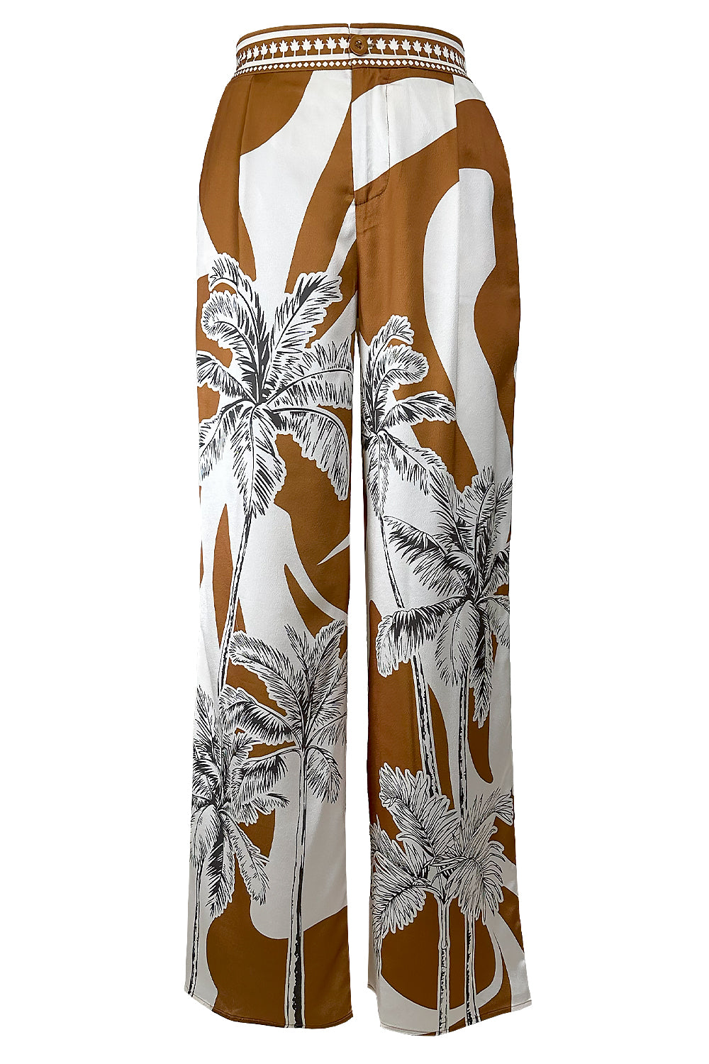 Palm Tree Satin Long Wide Pants (PANTS ONLY)