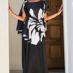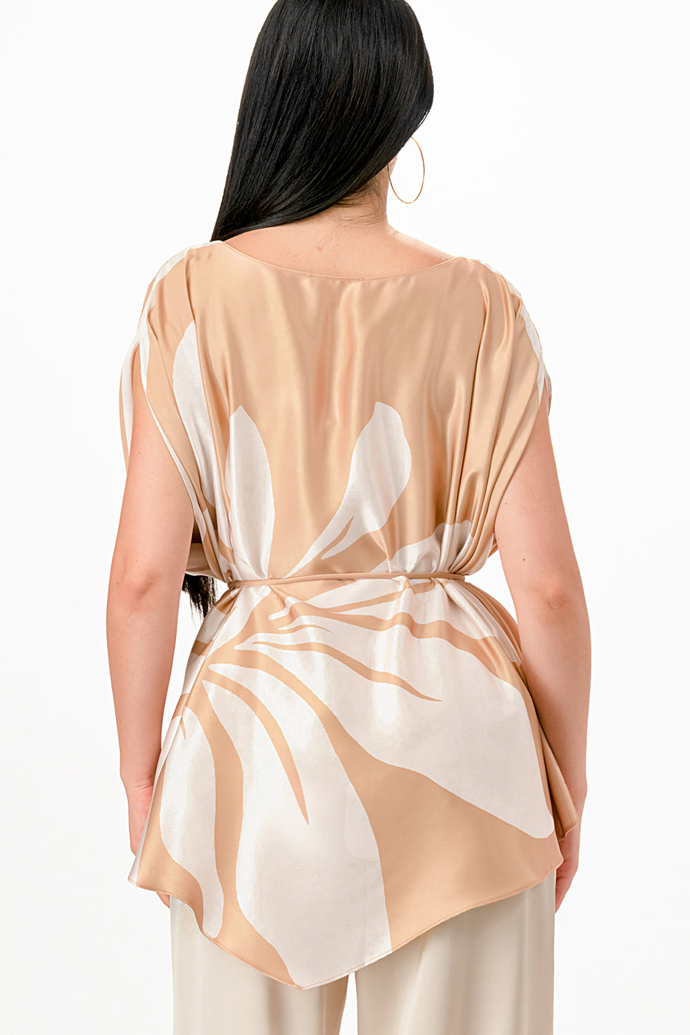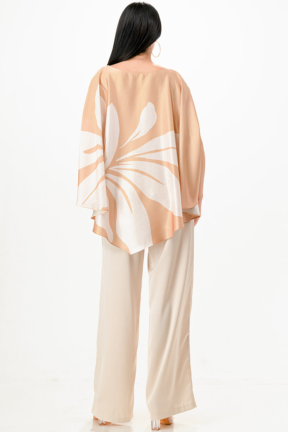 Oversized Floral Print Satin Cape Blouse (TOP ONLY)