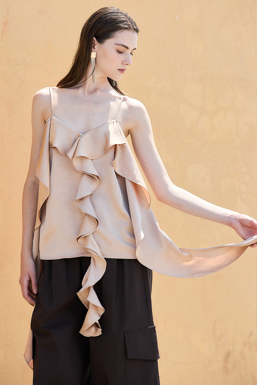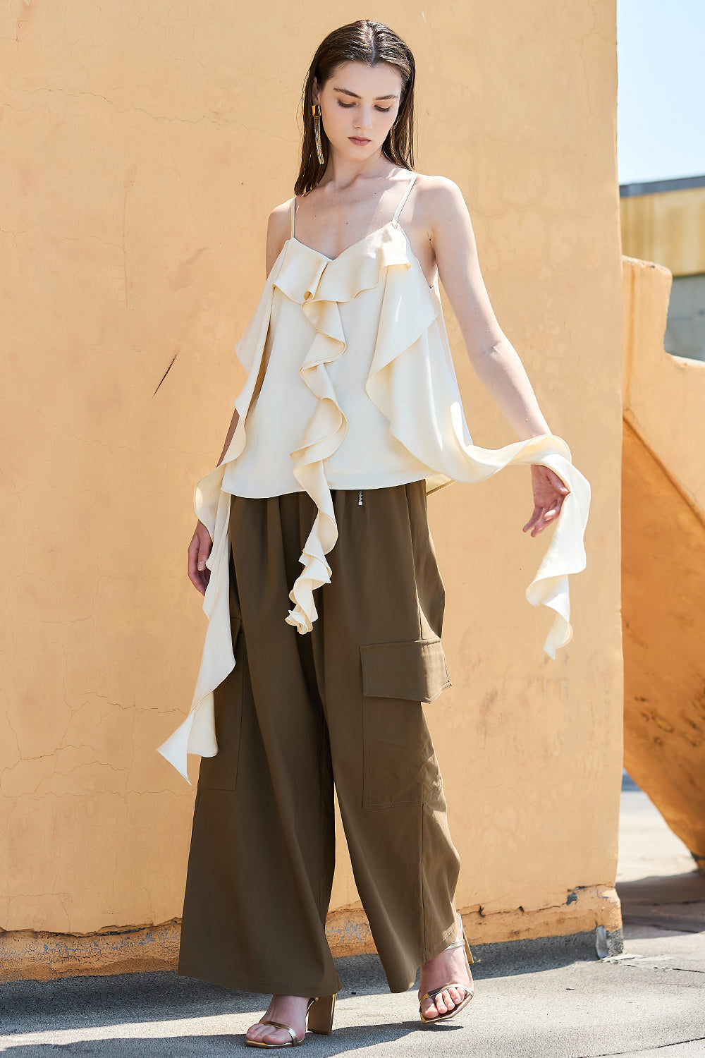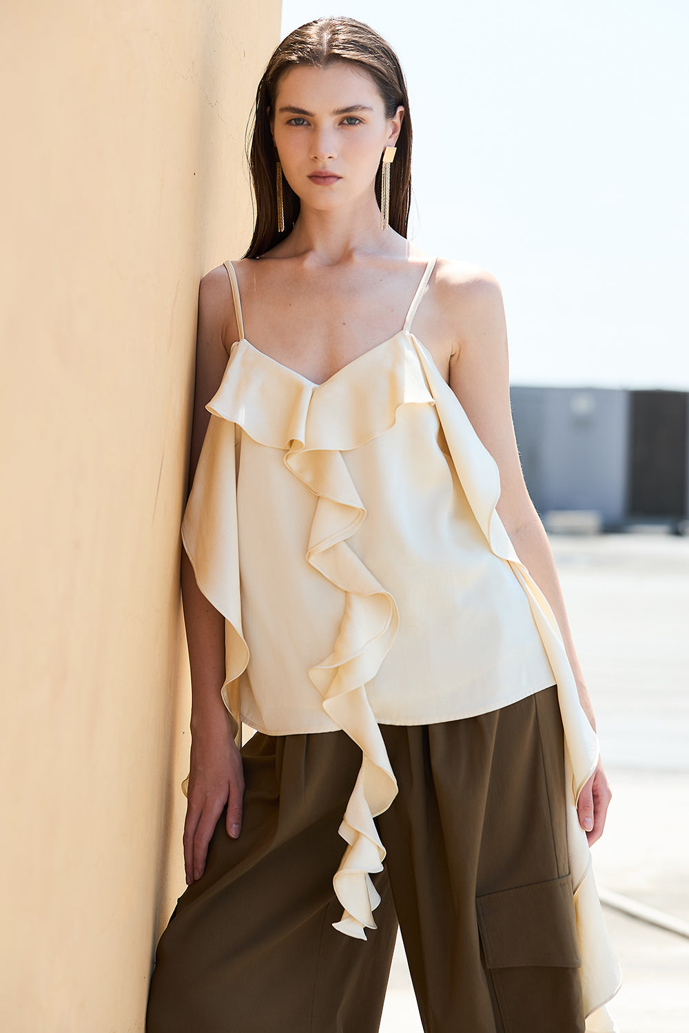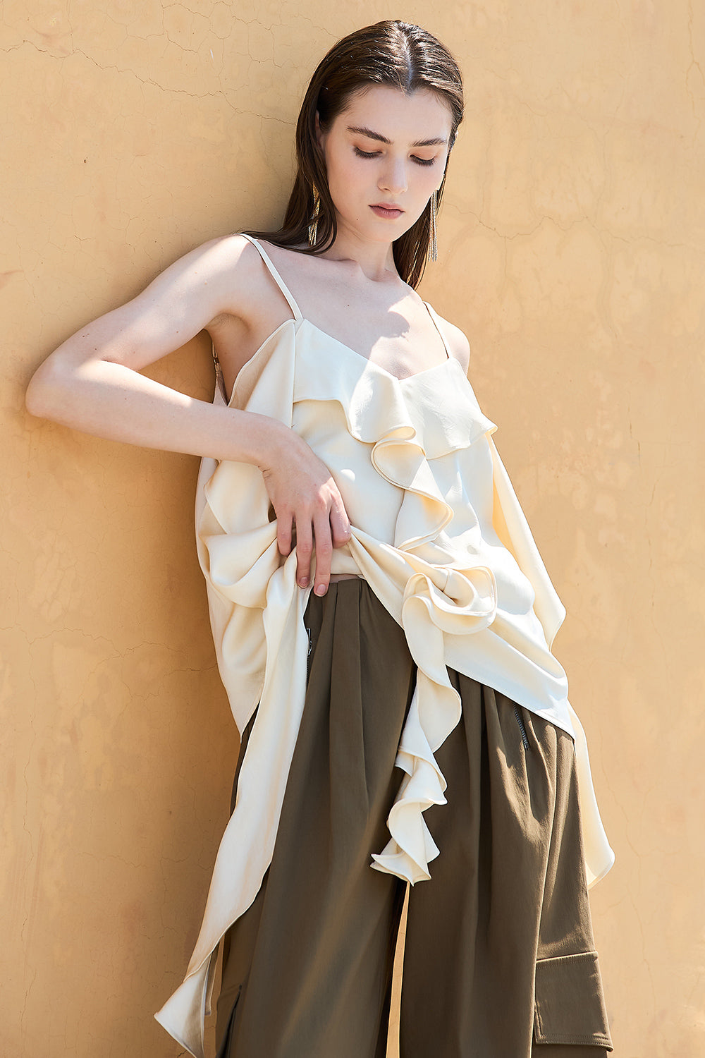 Ruffle Cascade Asymmetric Hem Cami Top (TOP ONLY)