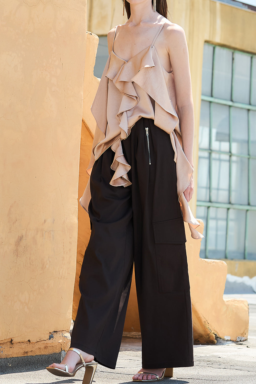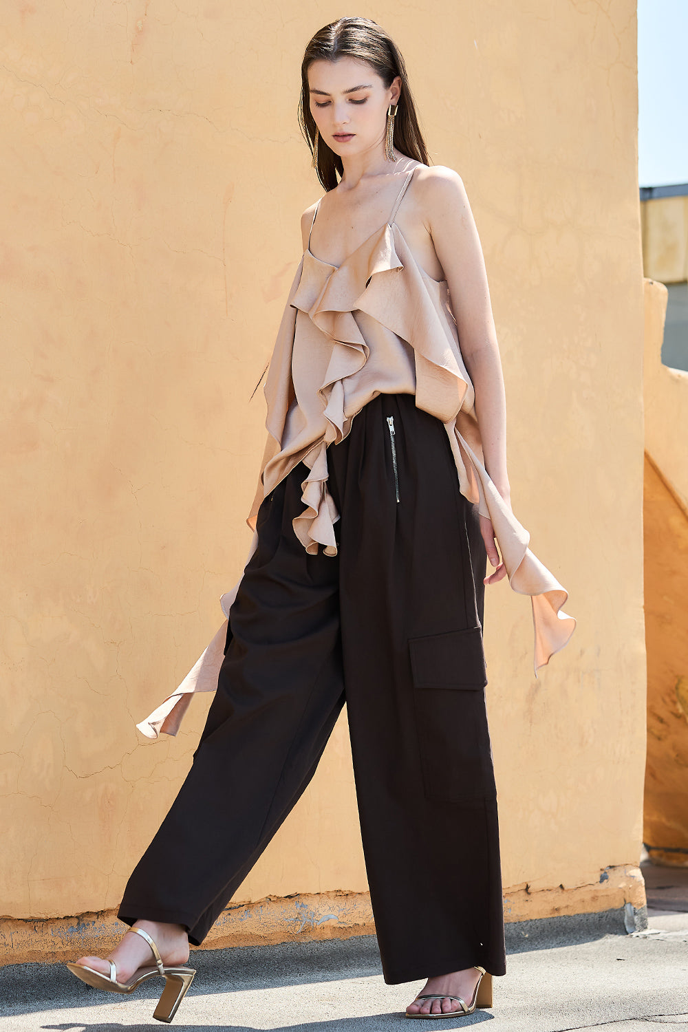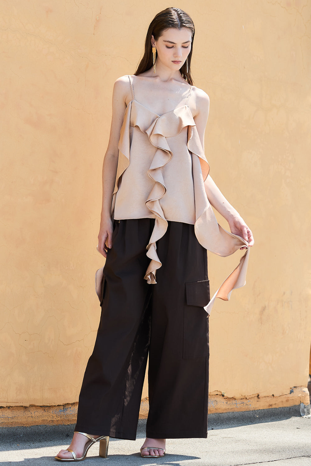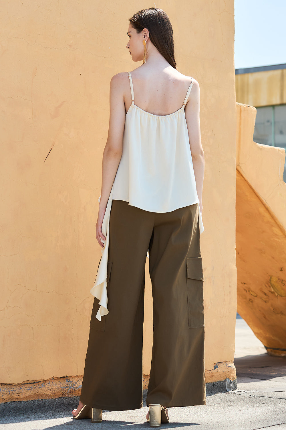 Ruffle Cascade Asymmetric Hem Cami Top (TOP ONLY)