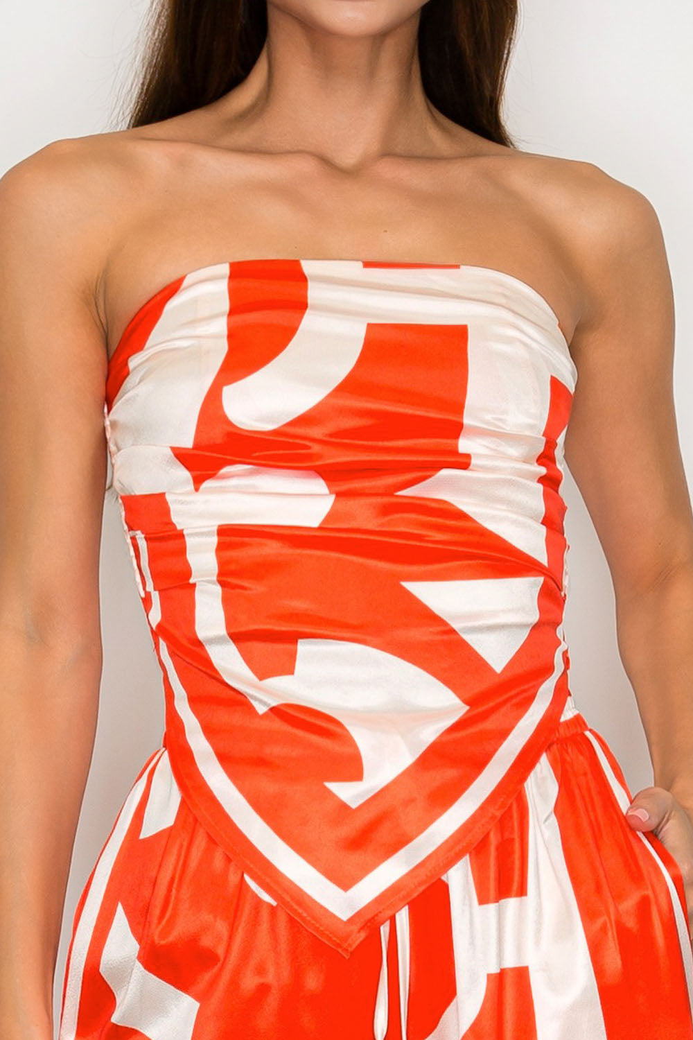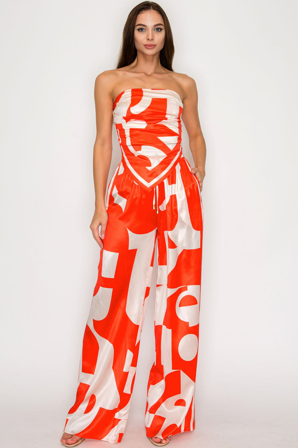 STRAPLESS SATIN EFFECT SCARF TOP & PANTS SET