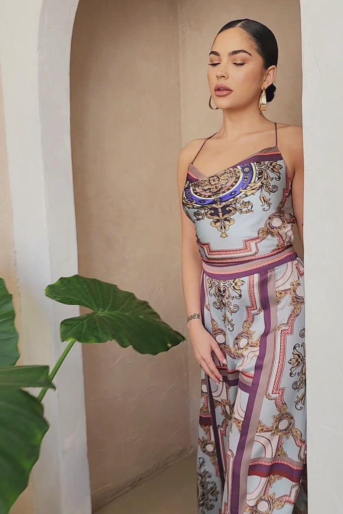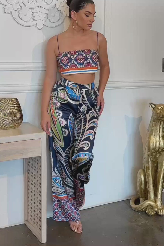 Convertible Scarf Crop Top & Wide Pants Set