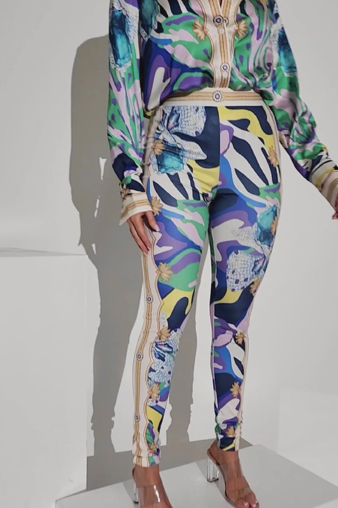Jewelry Printed Blouse & Legging Set
