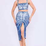 Denim Effect Crop Top & Slit Skirt Set