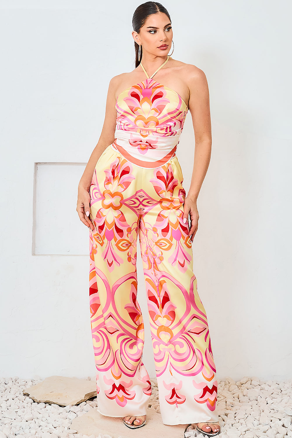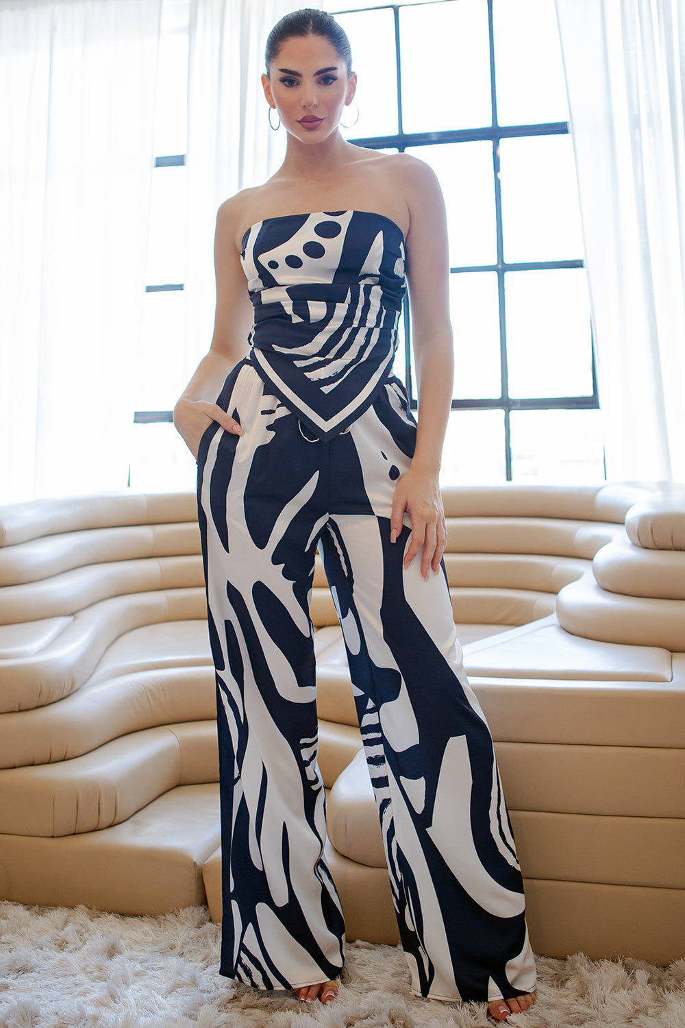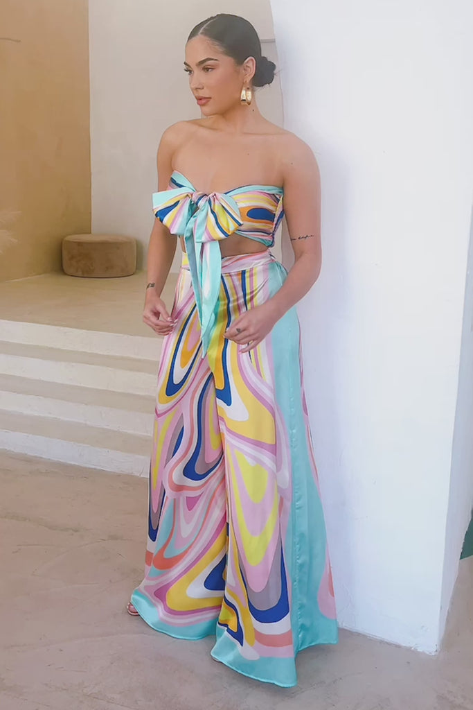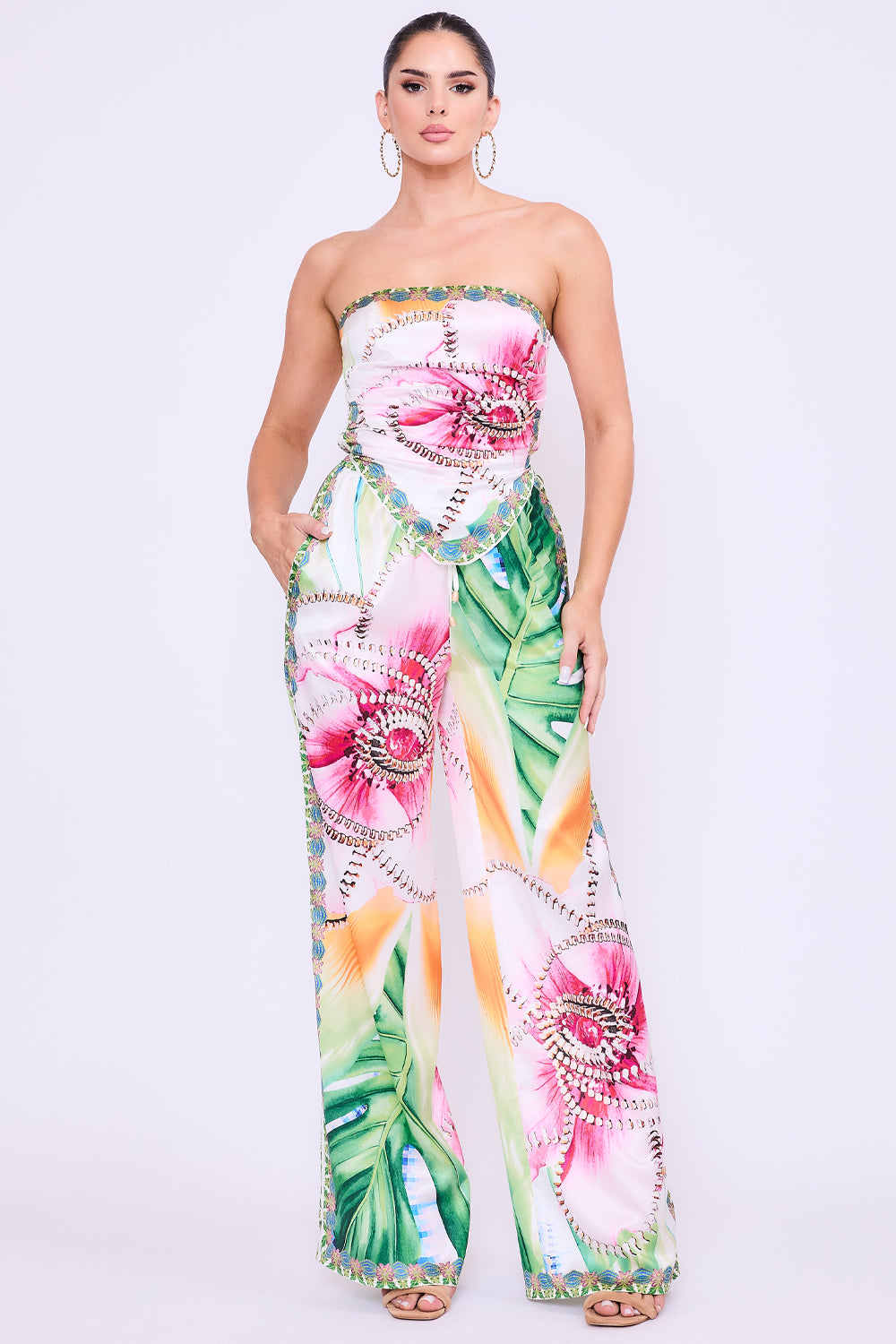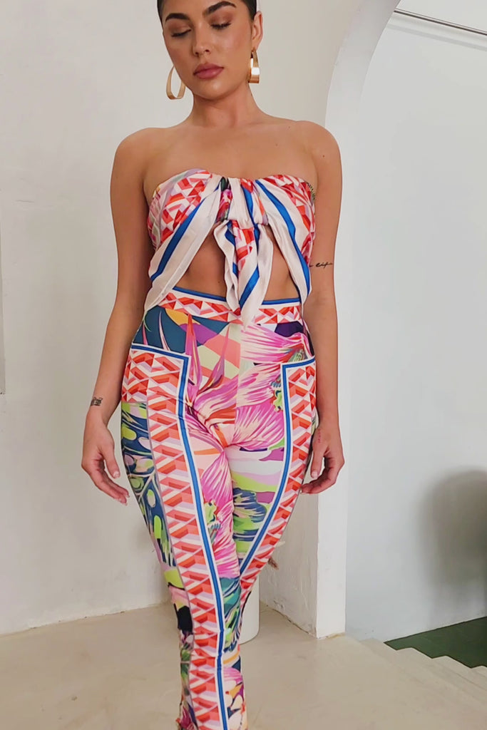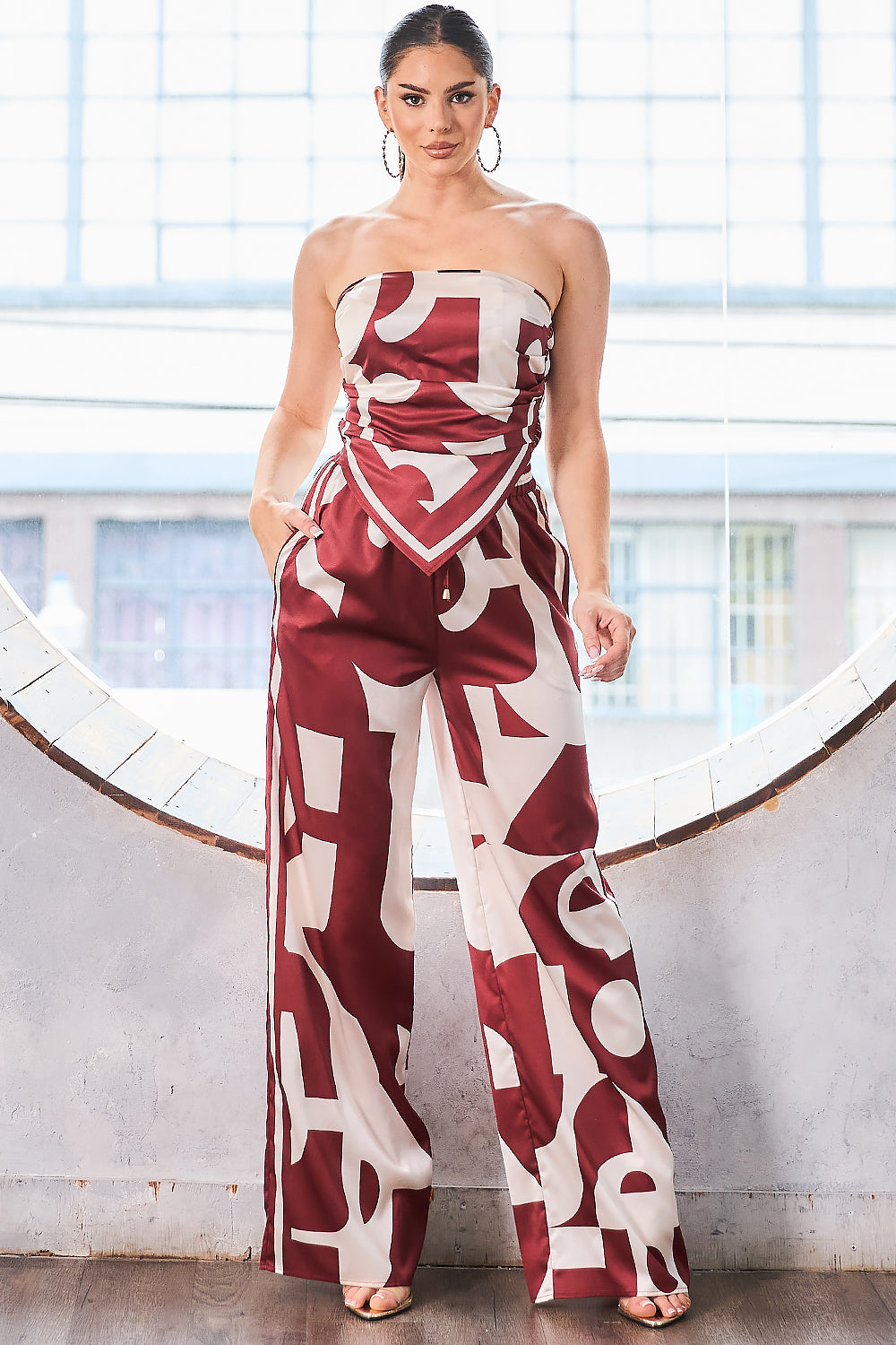 Leopard Strapless Satin Effect Scarf Top & Pants Set