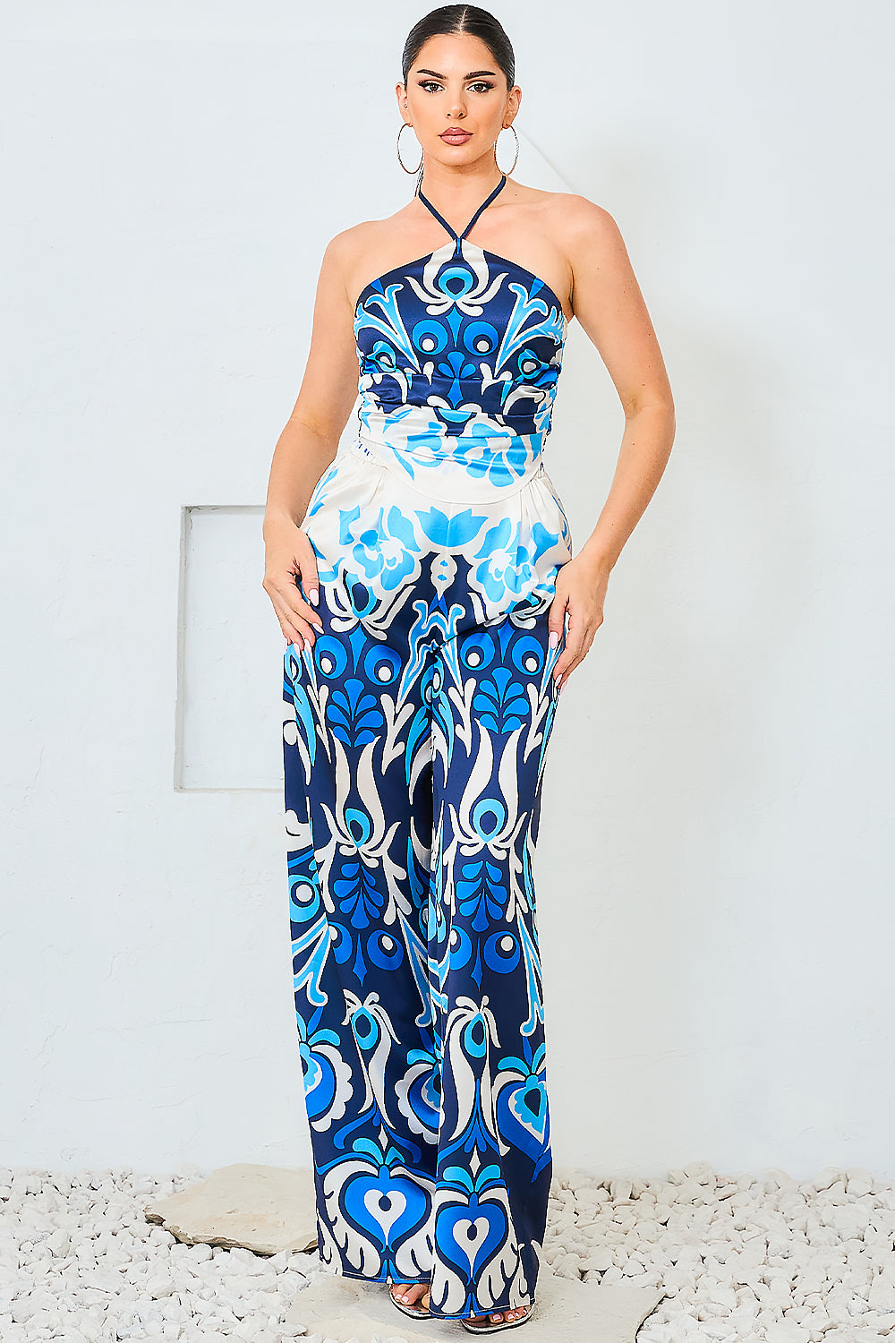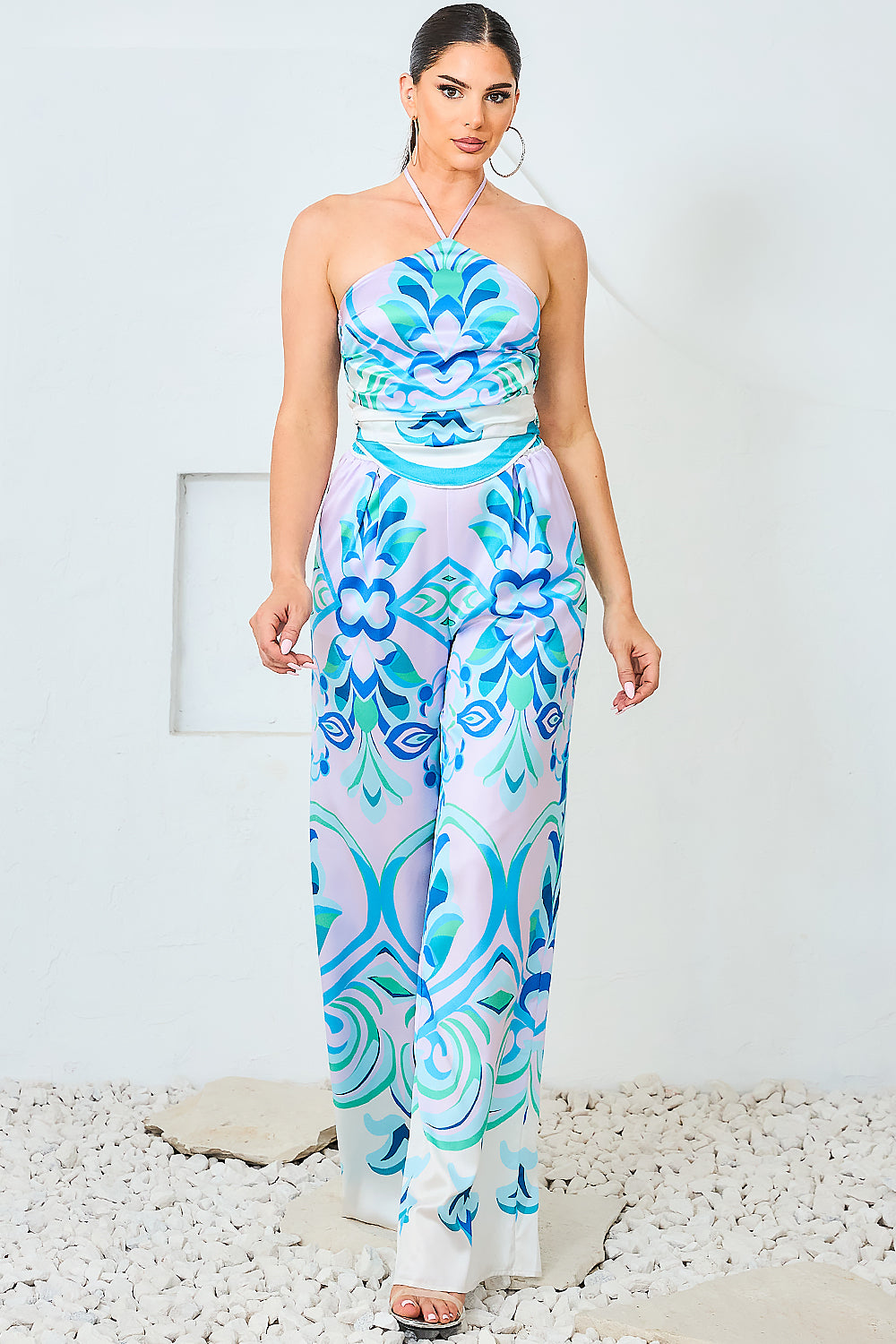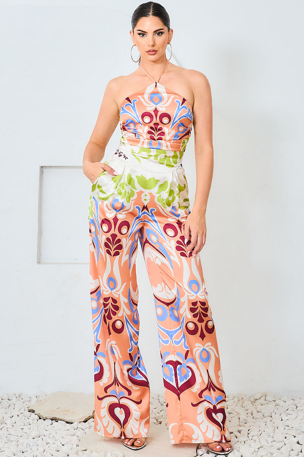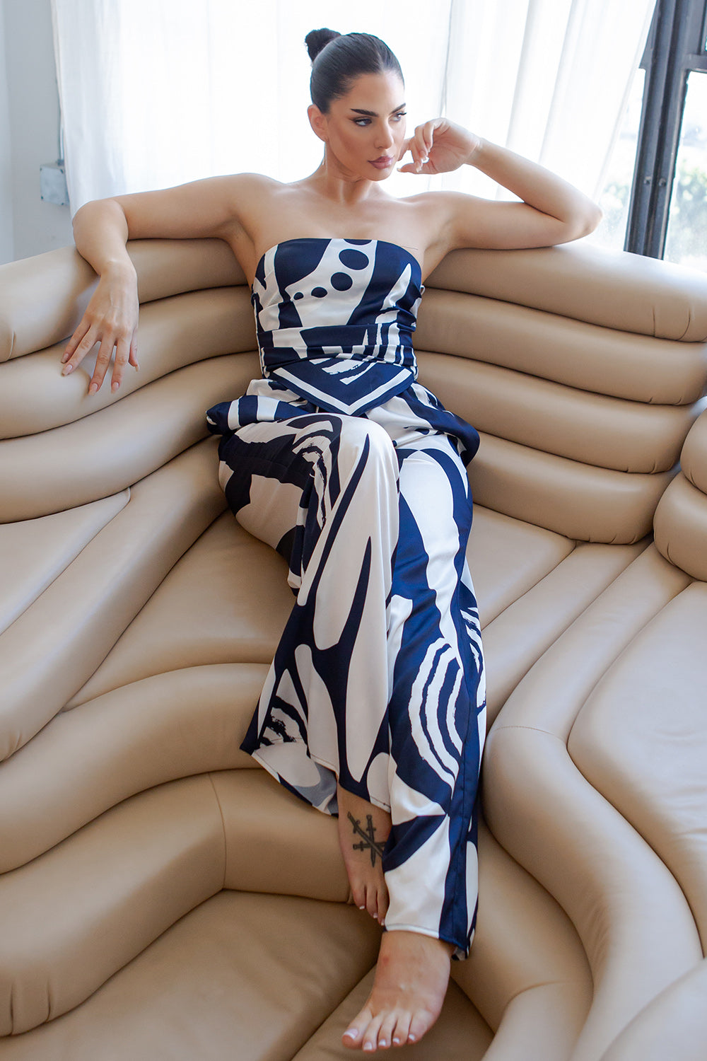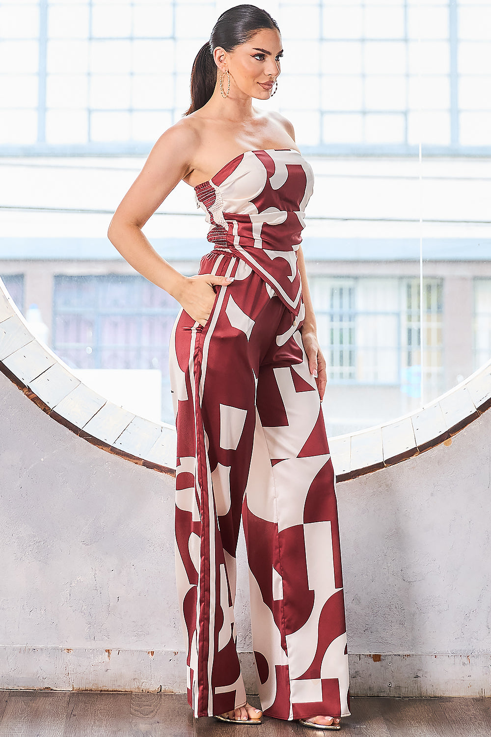 Leopard Strapless Satin Effect Scarf Top & Pants Set