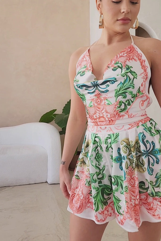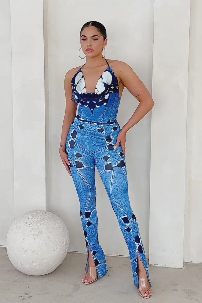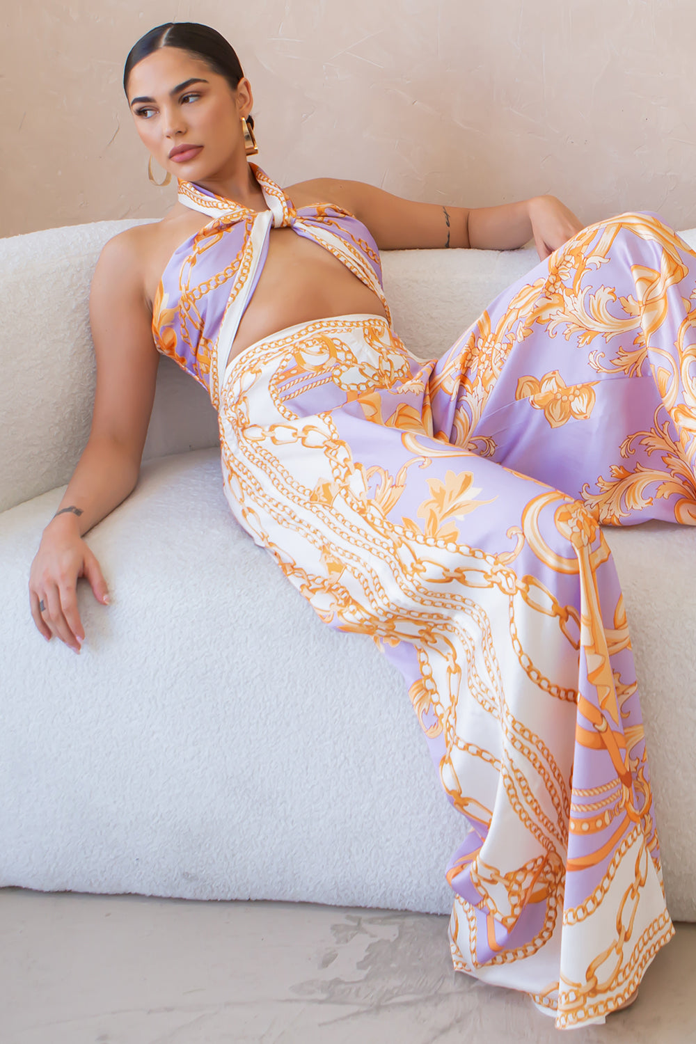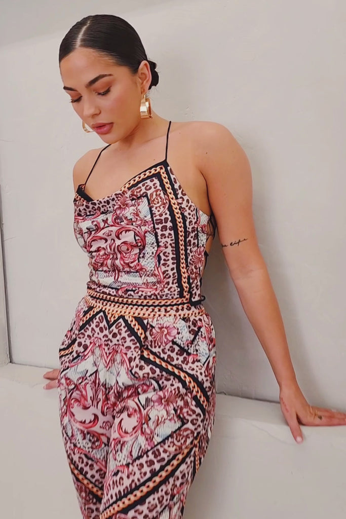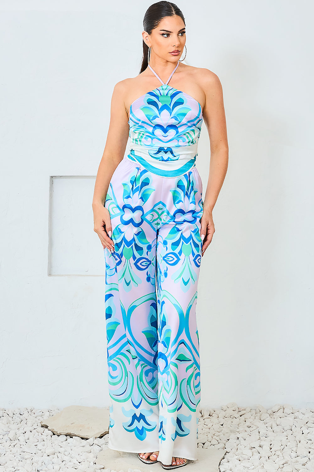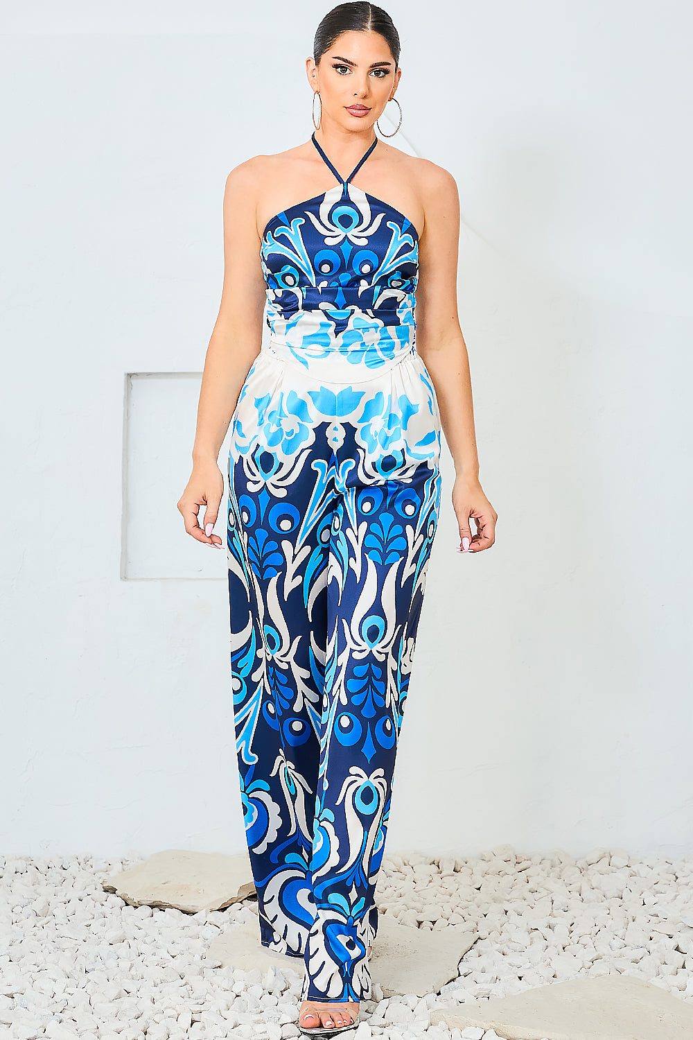 Leopard Strapless Satin Effect Scarf Top & Pants Set