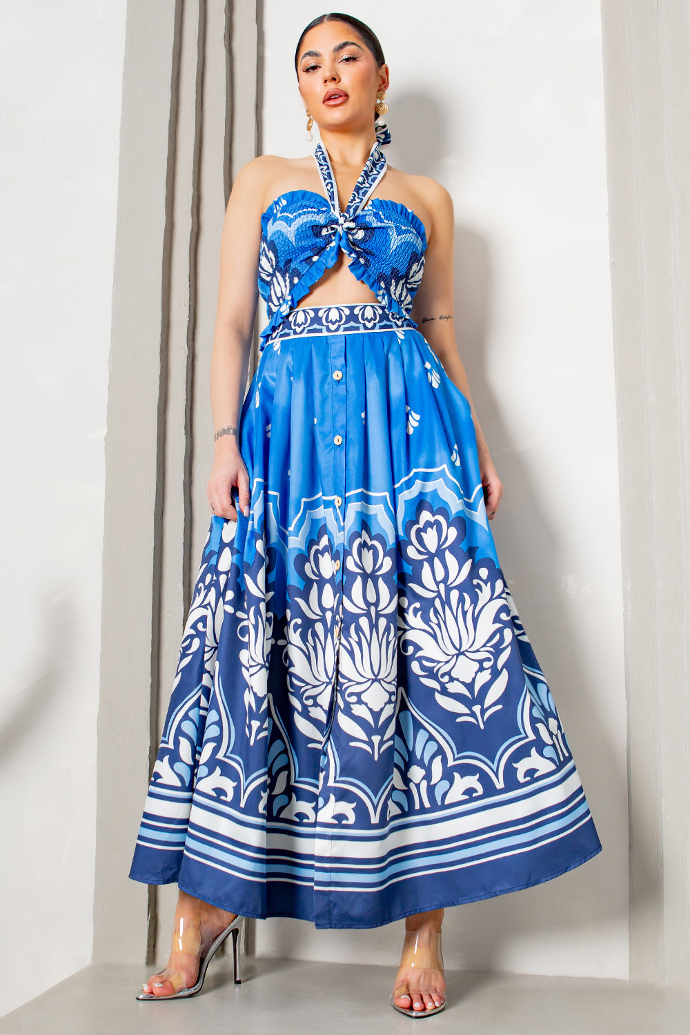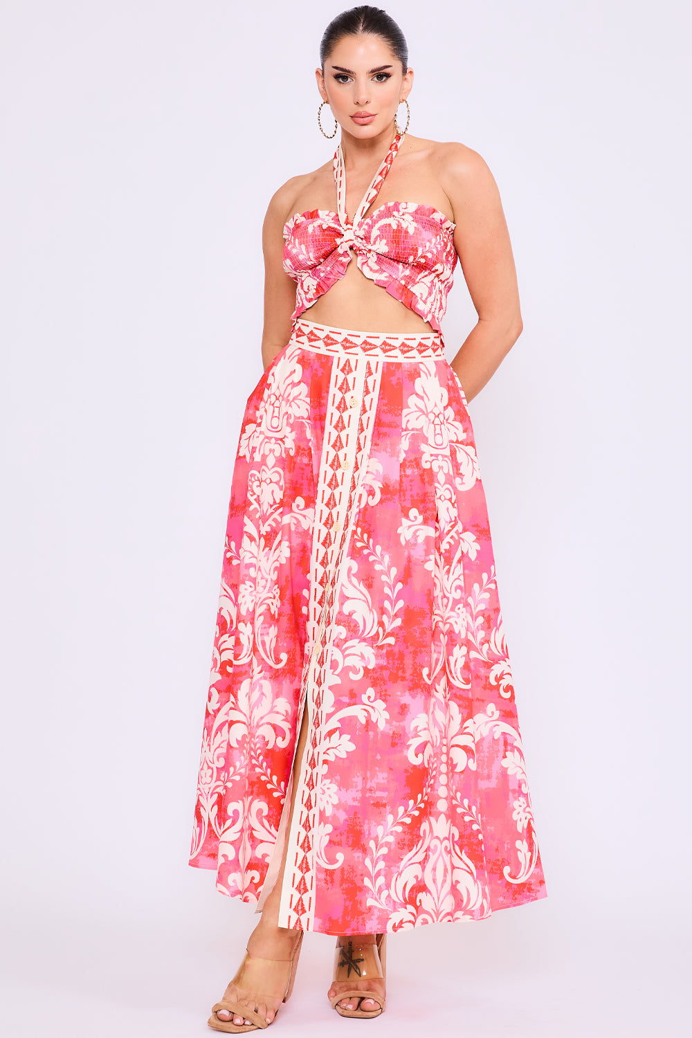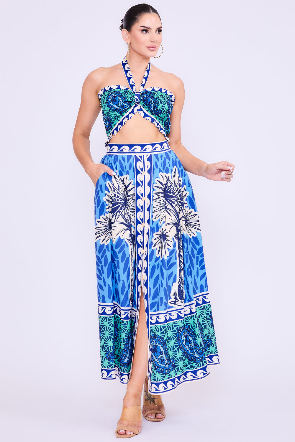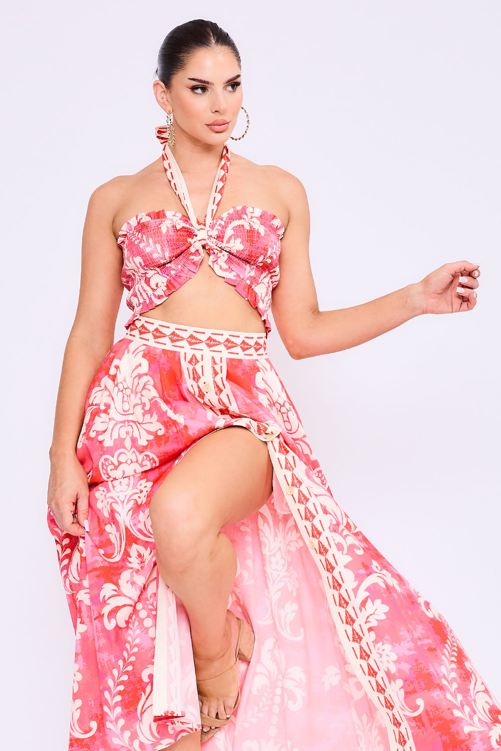 Convertible Smocked Crop Top & Tiered Mini Skirt Set