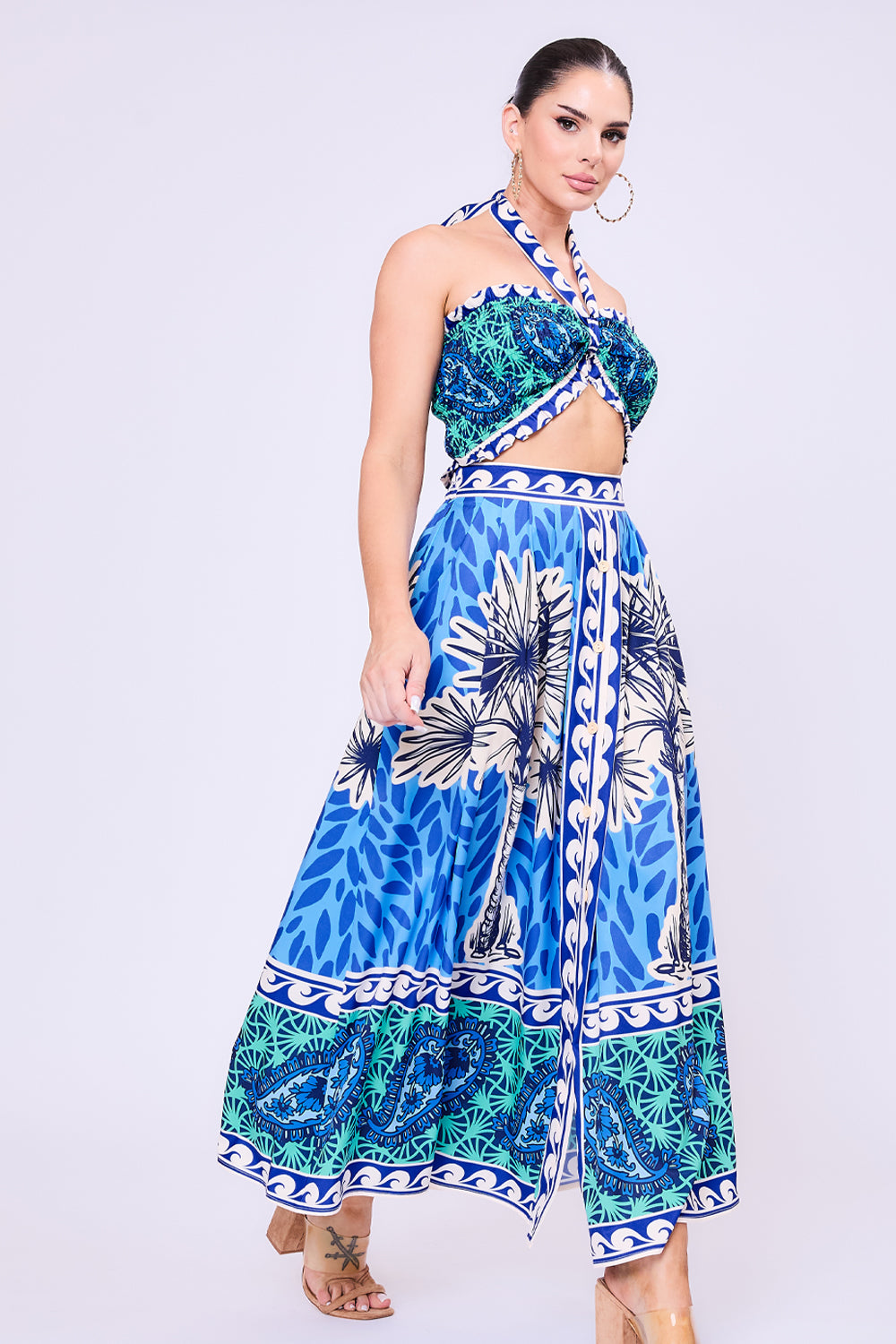 Short Dolman Sleeve Cropped Top & Slit Skirt Set