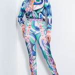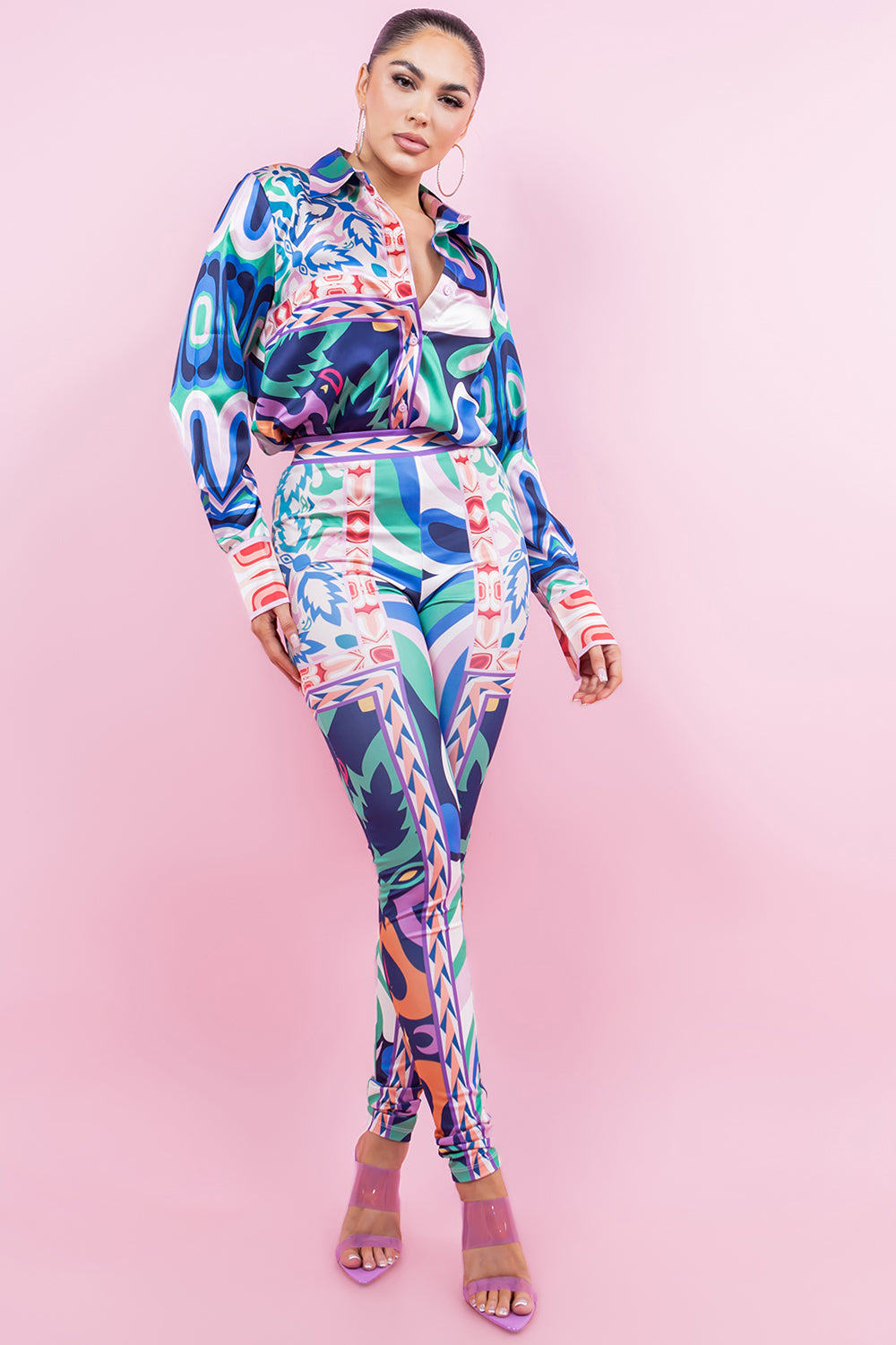 - 96% POLYESTER / 5% SPANDEX (BOTTOM)