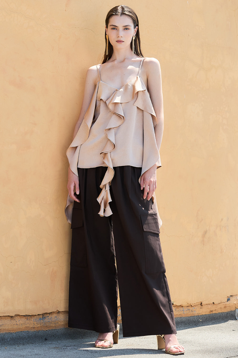 Ruffle Cascade Asymmetric Hem Cami Top (TOP ONLY)