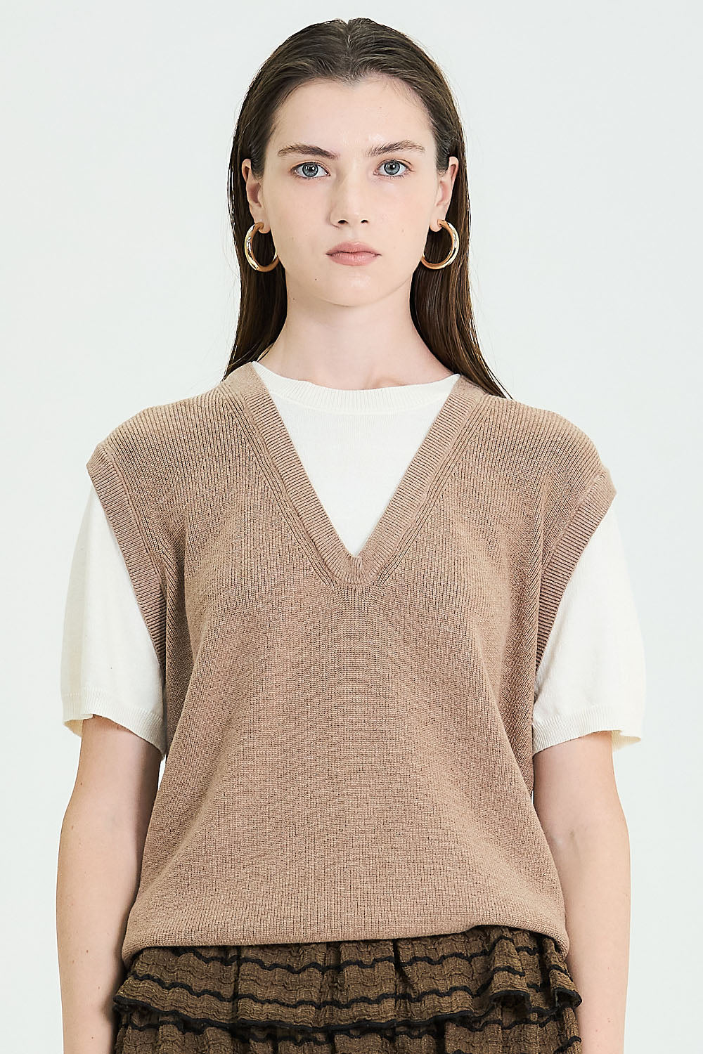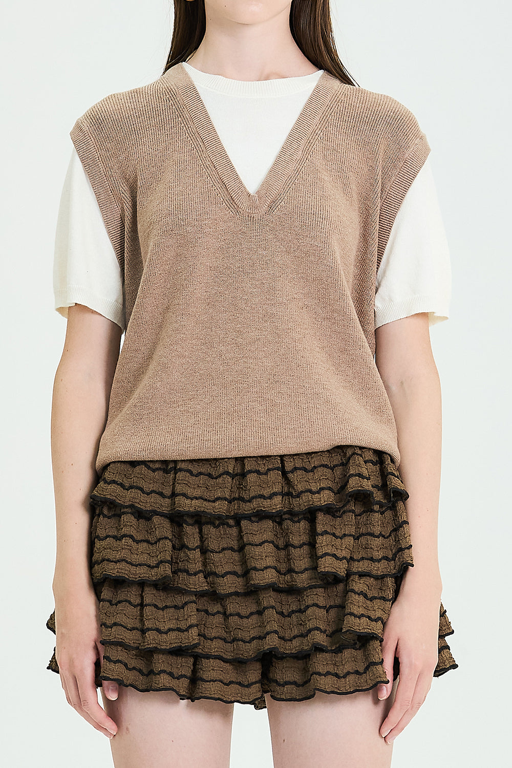Short Sleeve Knit Layered Vest Top (TOP ONLY)