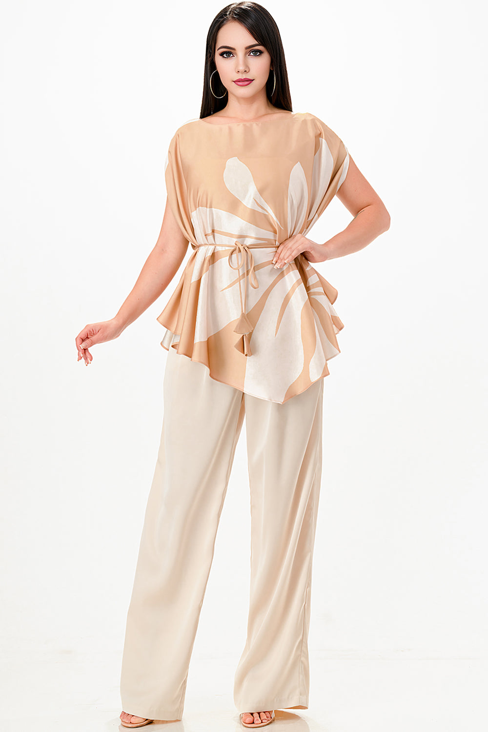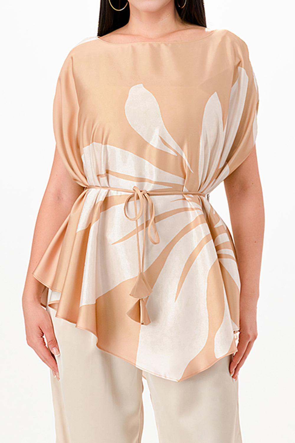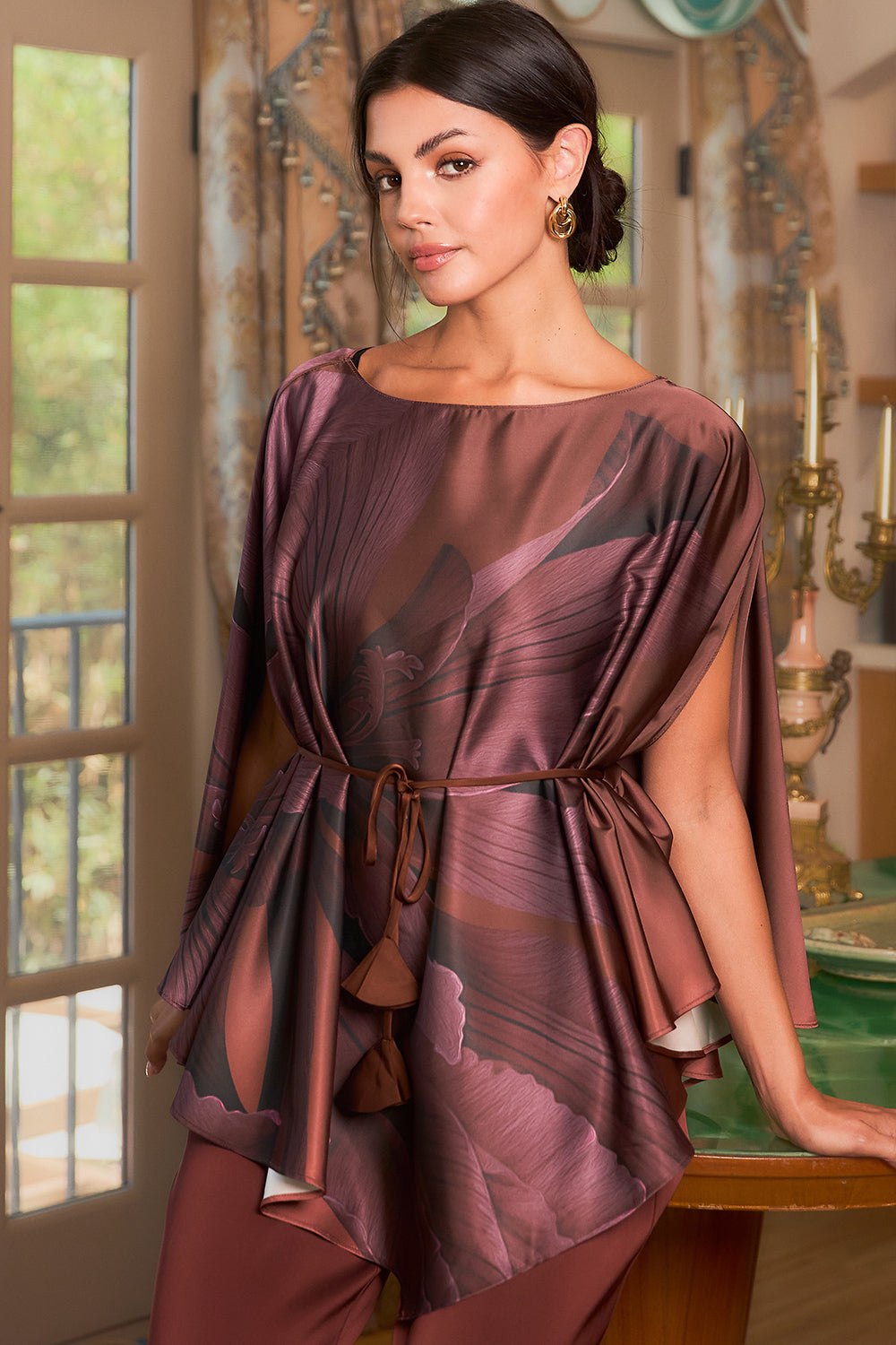 Oversized Floral Print Satin Cape Blouse (TOP ONLY)