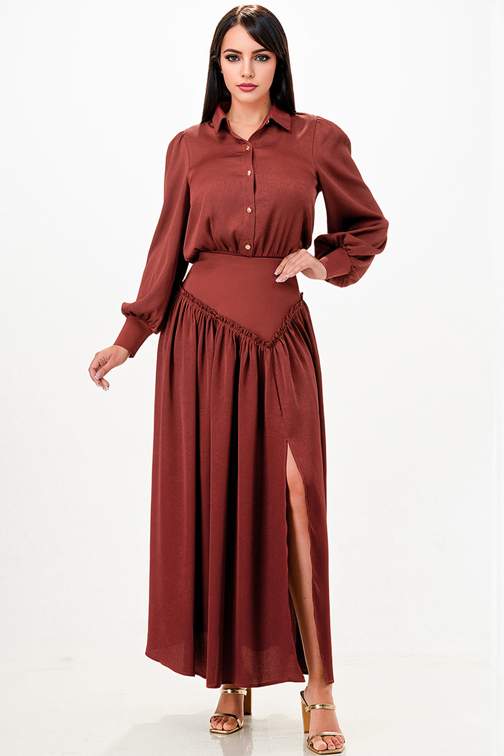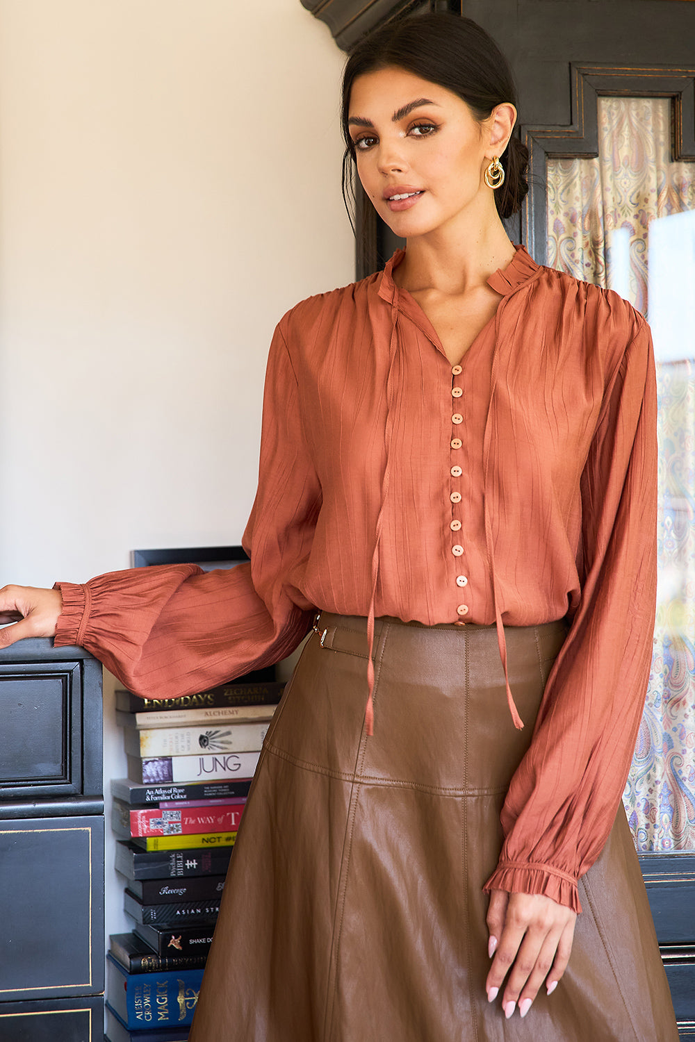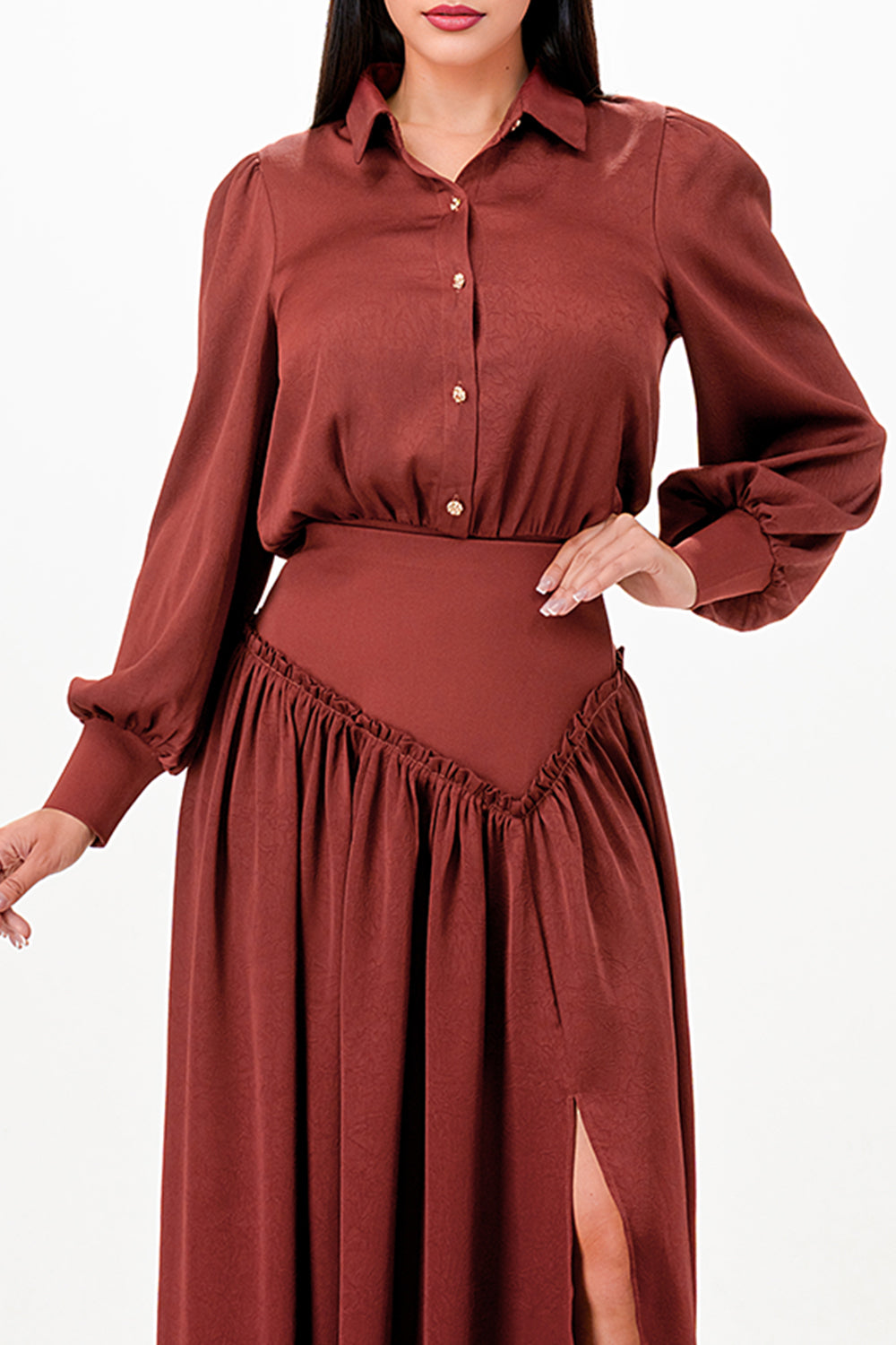 Classic Collared Puff-Sleeve Blouse With Ribbed Waist