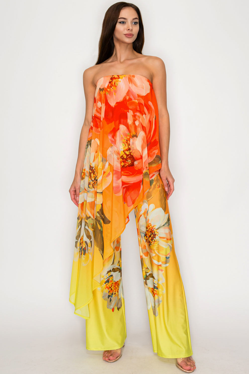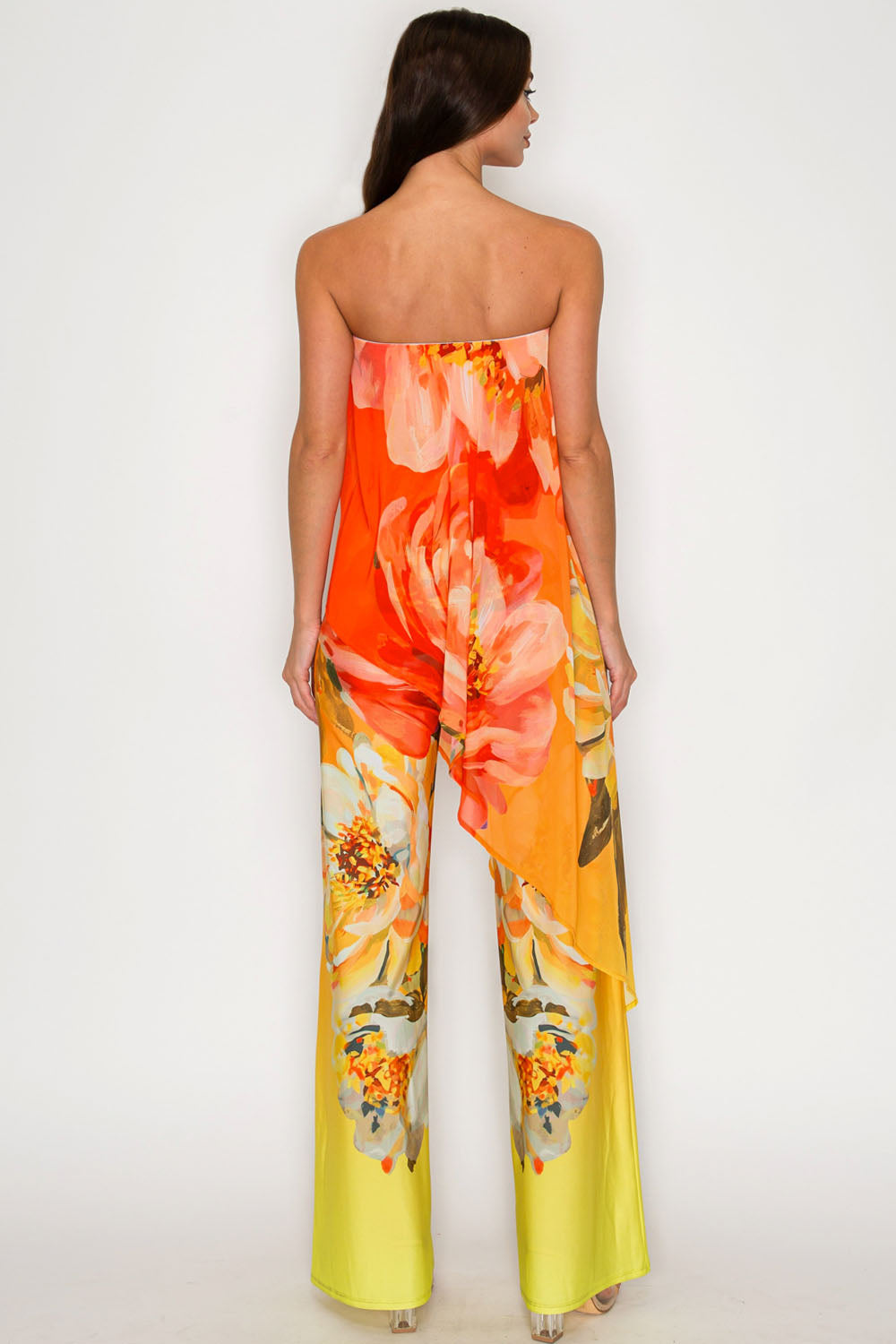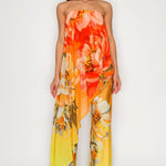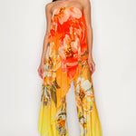 FLORAL DRAPED STRAPLESS JUMPSUIT