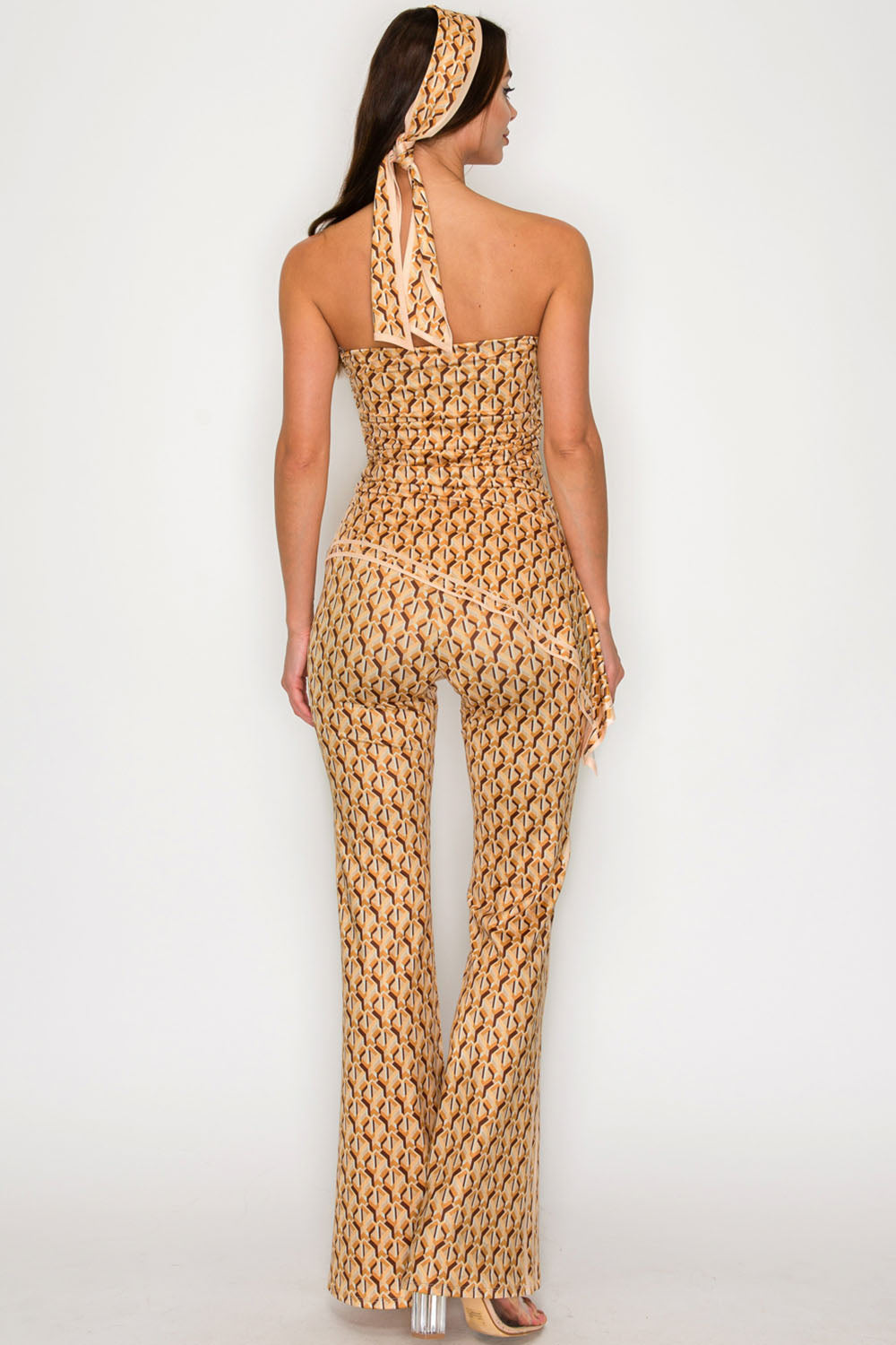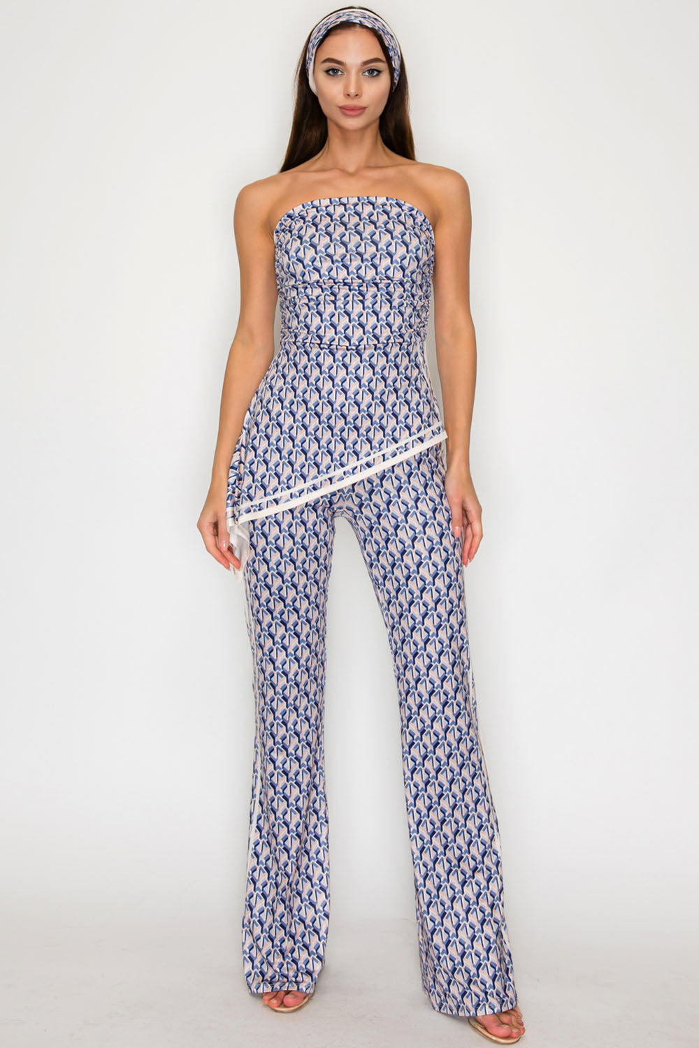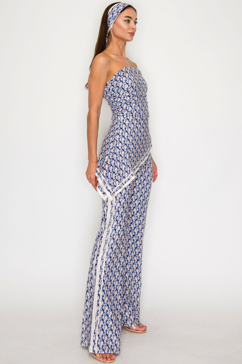 Off-shoulder Stretch Jumpsuit with Asymmetric Scarf Accent