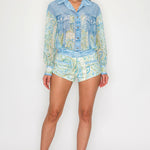 Paisley Denim Effect Chiffon Shirt & Shorts Set