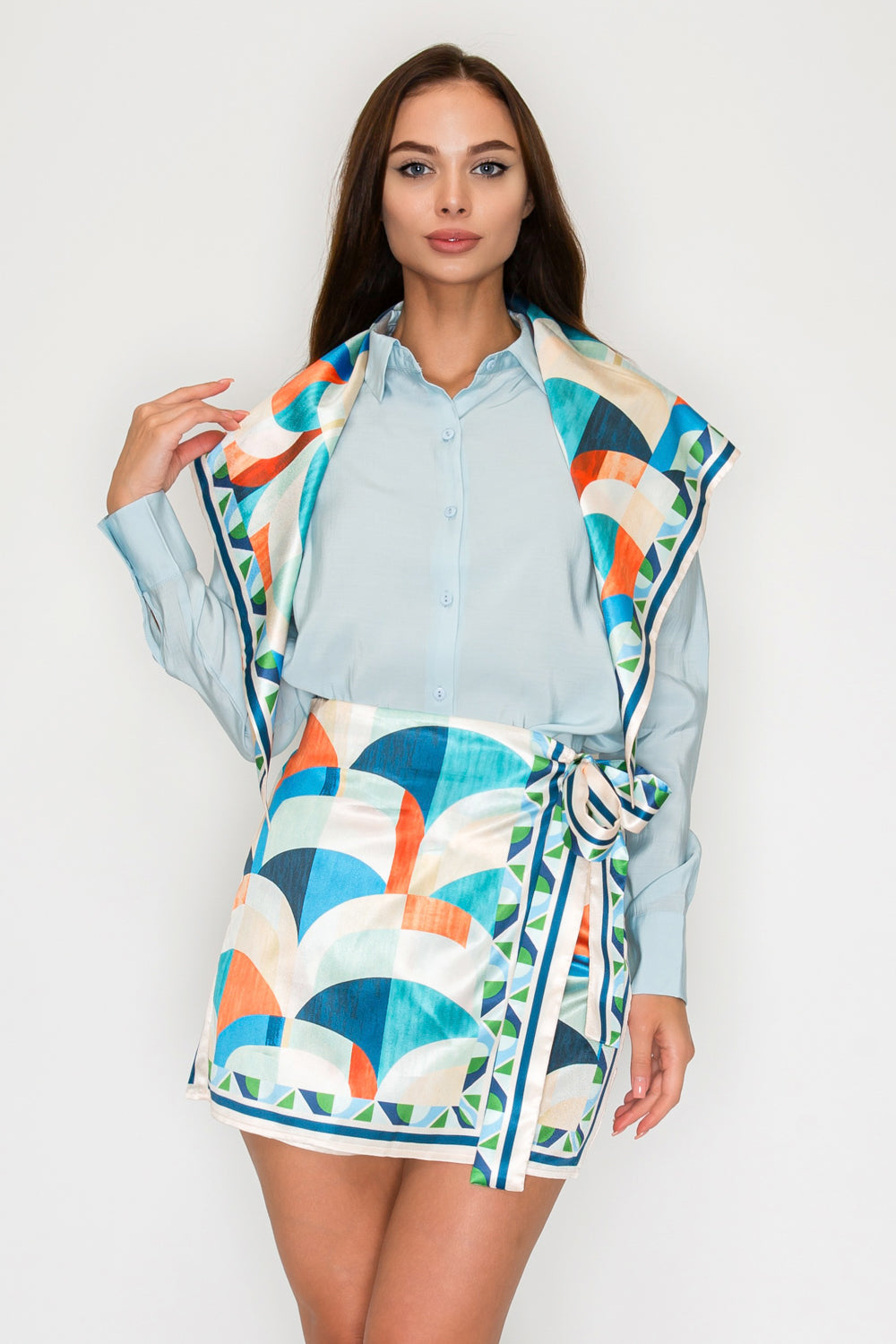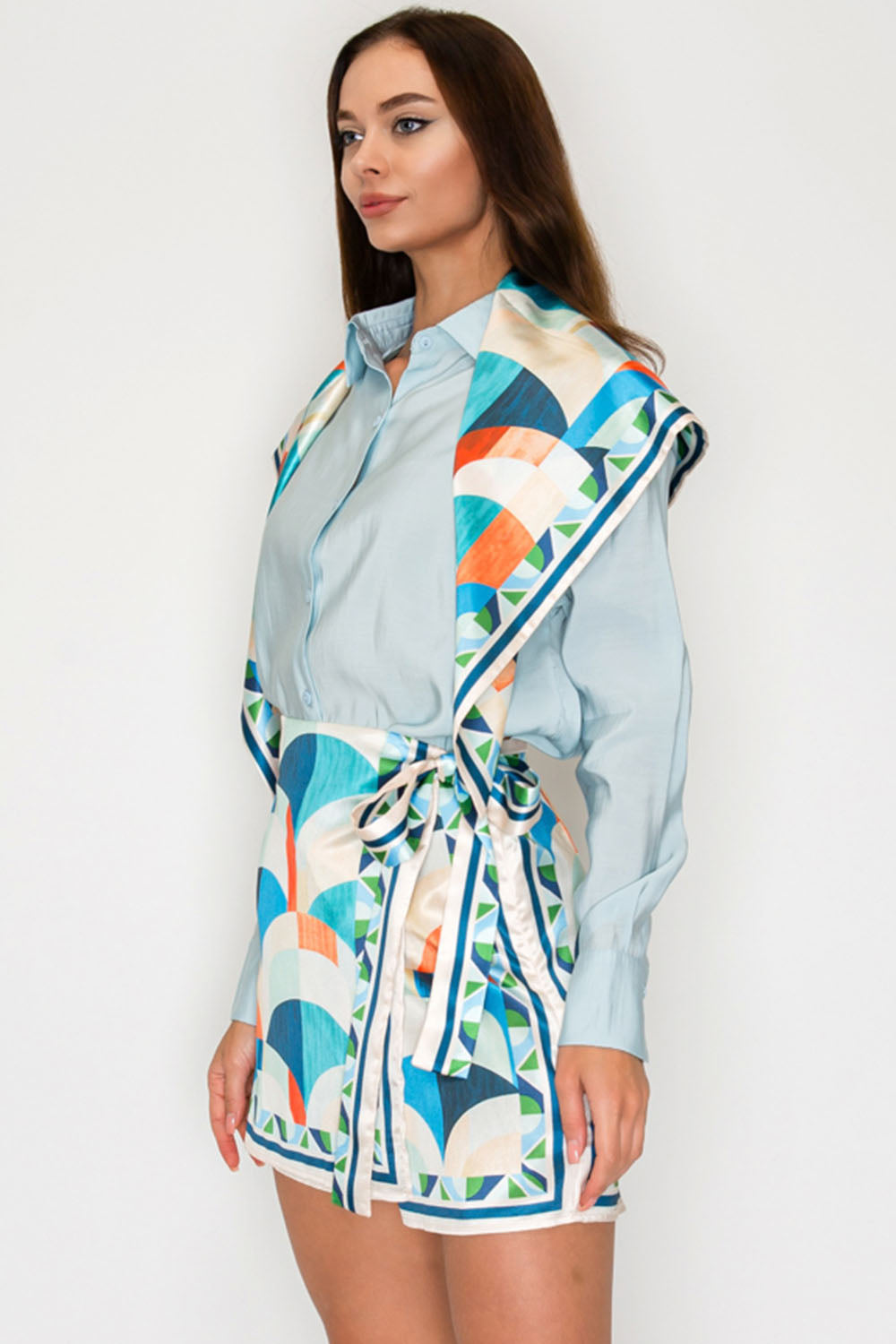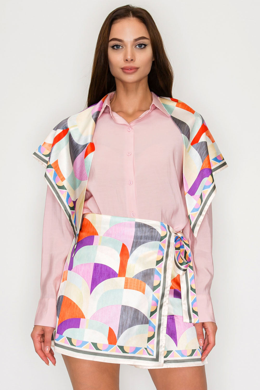 Printed Scarf Detail Shirt & Wrap Skort Set