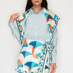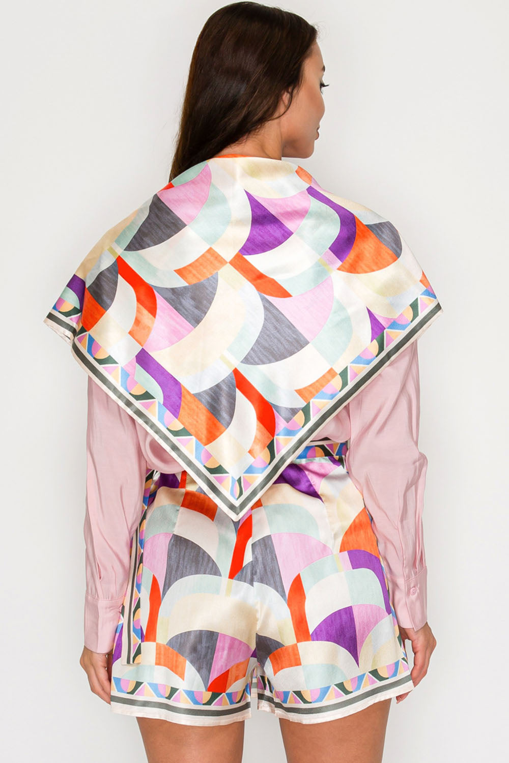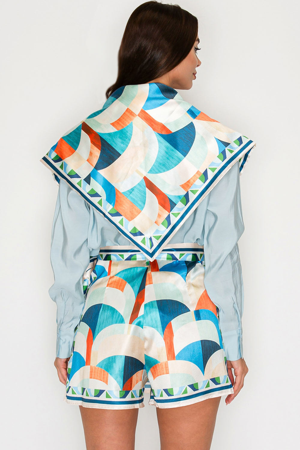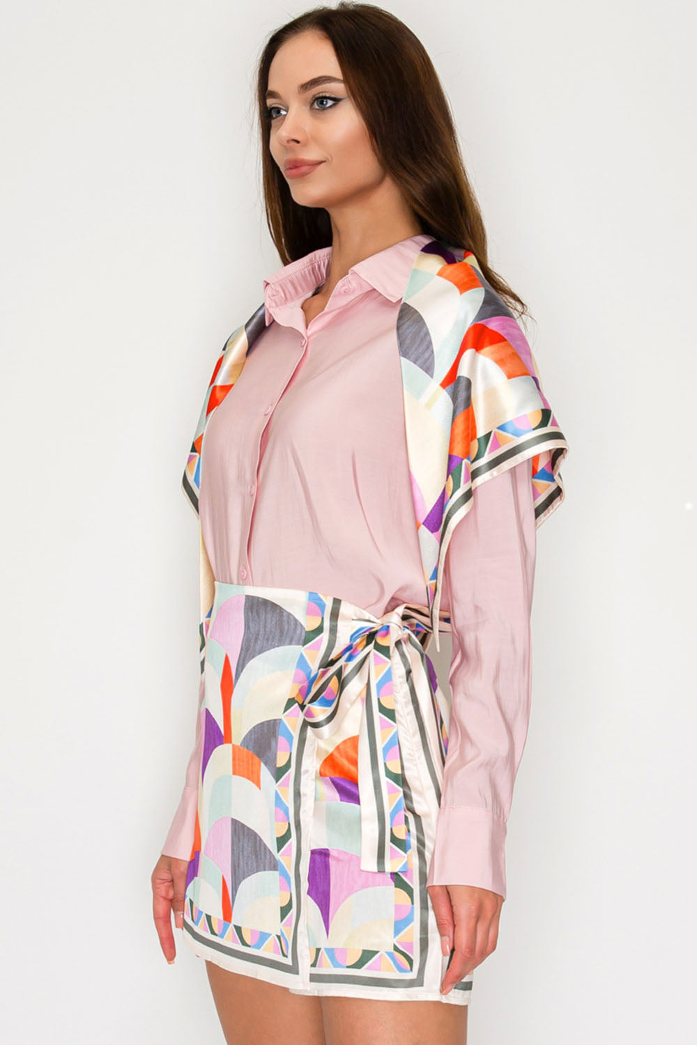 Printed Scarf Detail Shirt & Wrap Skort Set