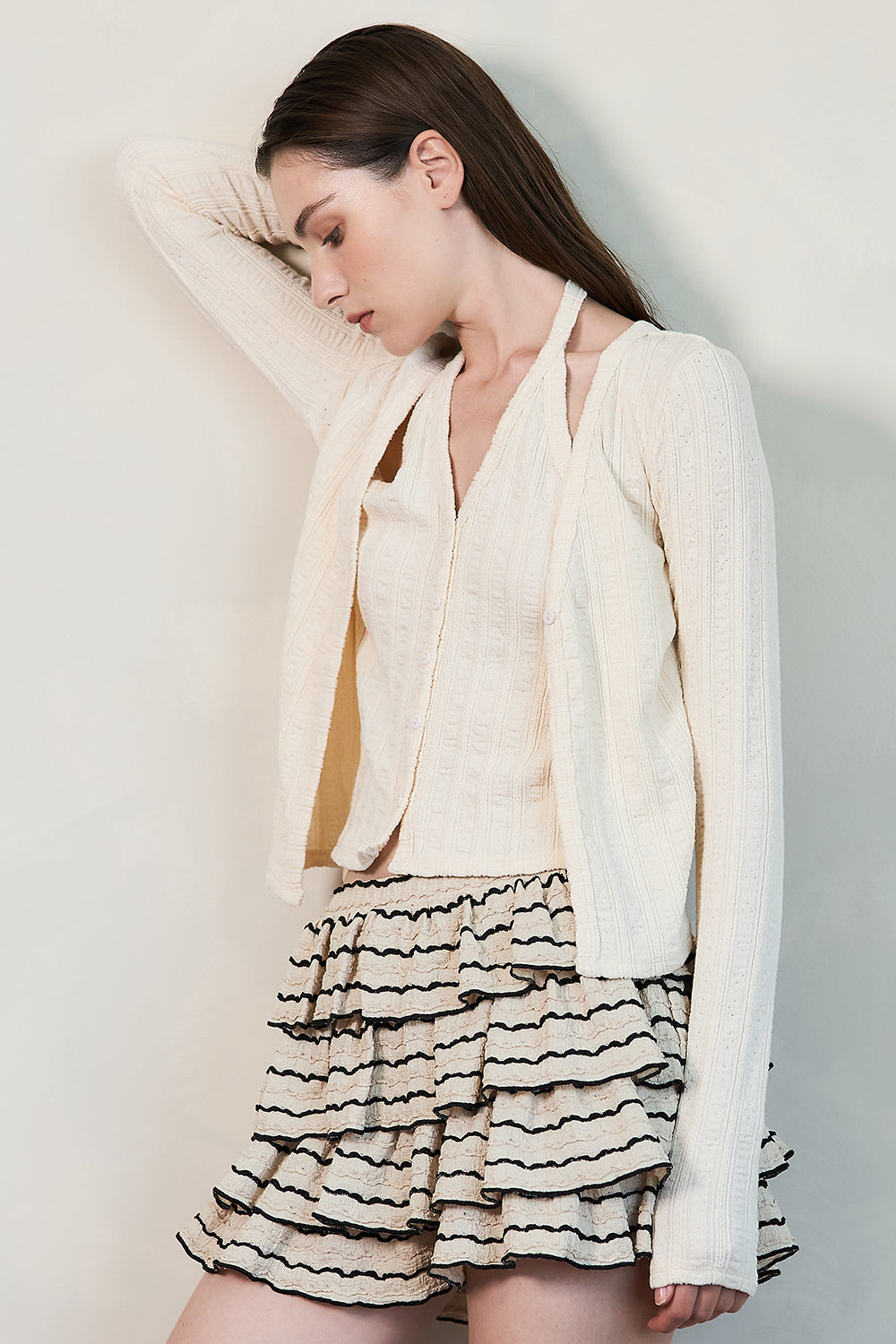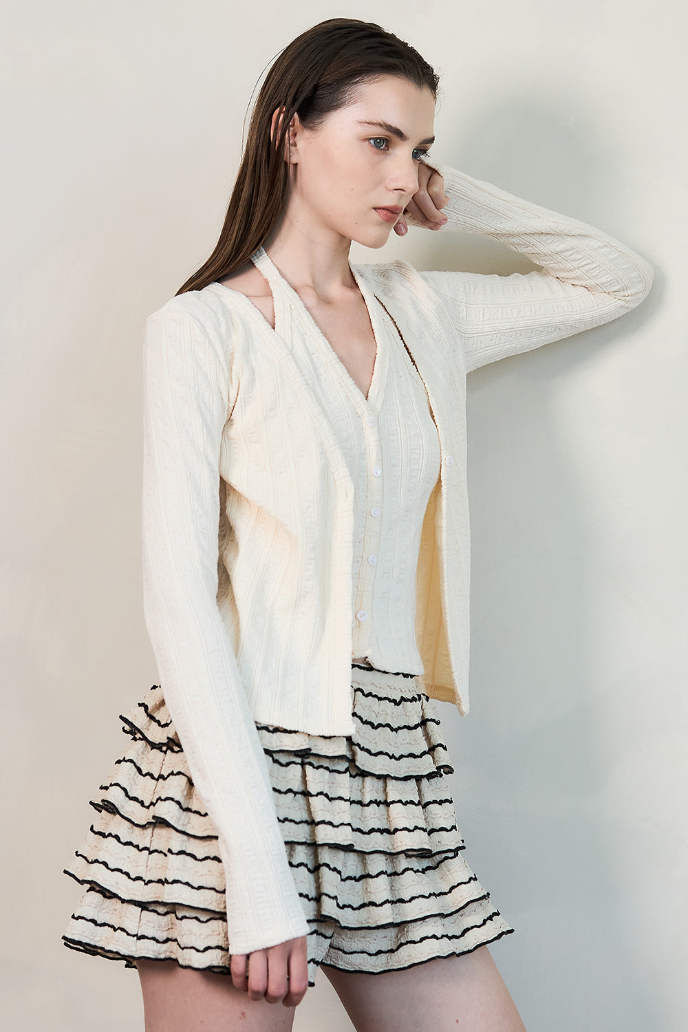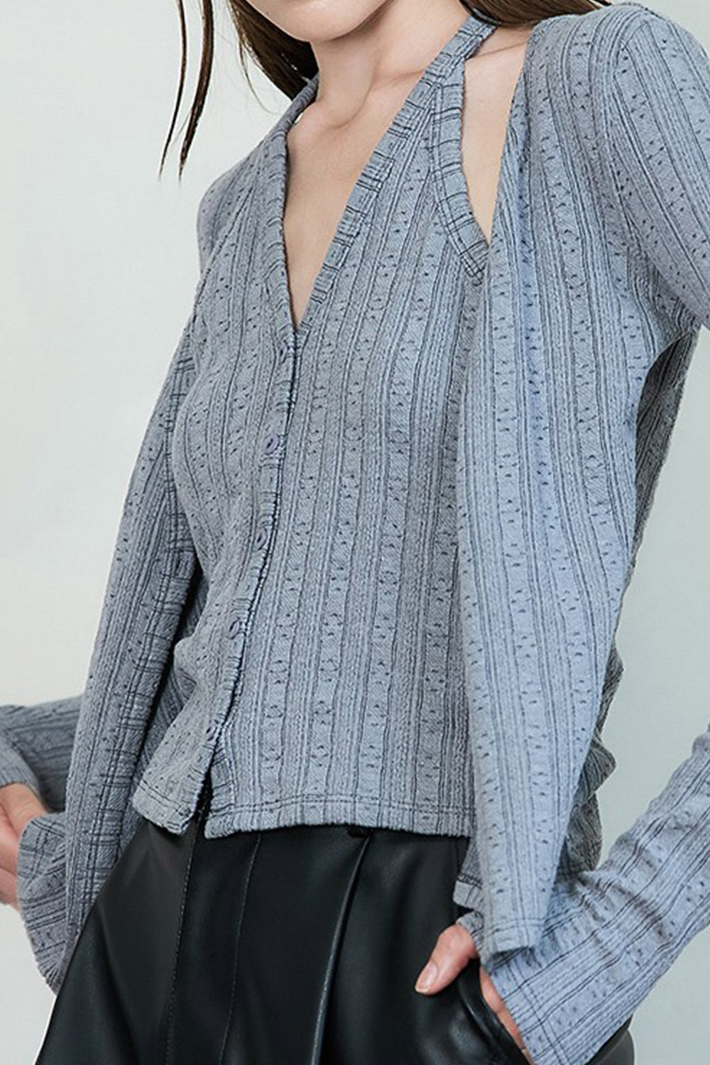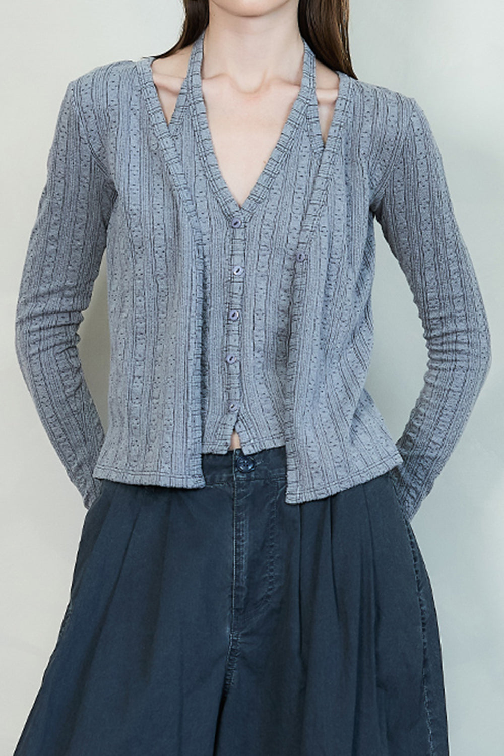 Ribbed Knit Halter-Layered Button-Up Top (TOP ONLY)