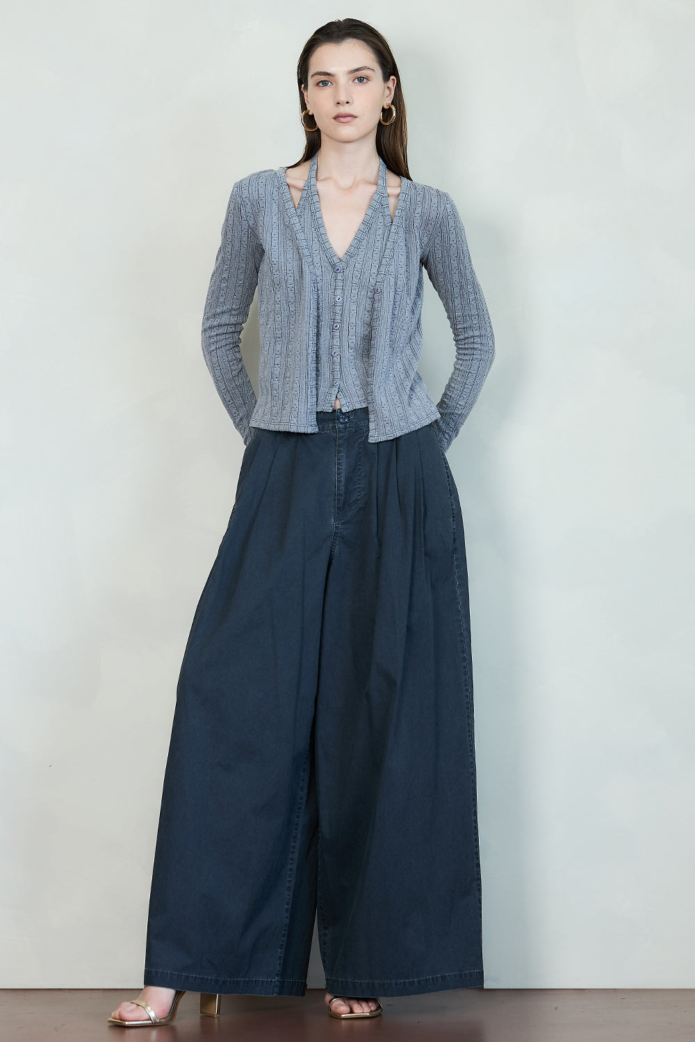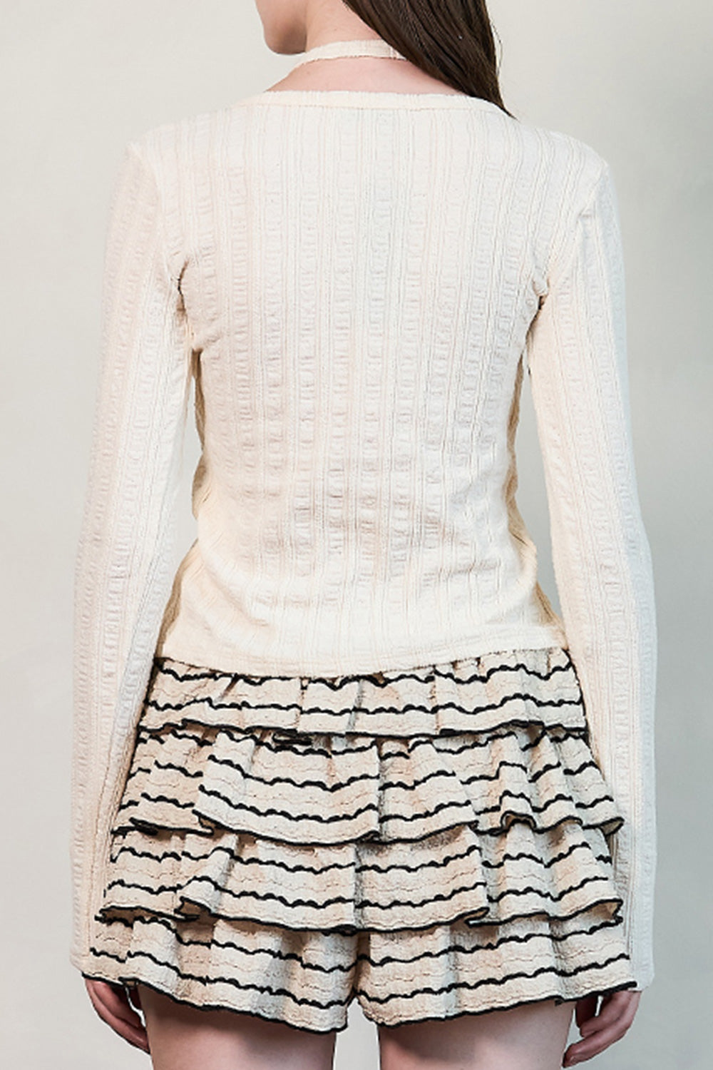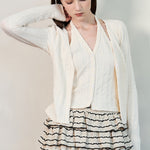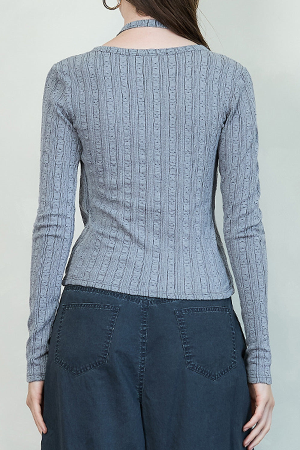 Ribbed Knit Halter-Layered Button-Up Top (TOP ONLY)