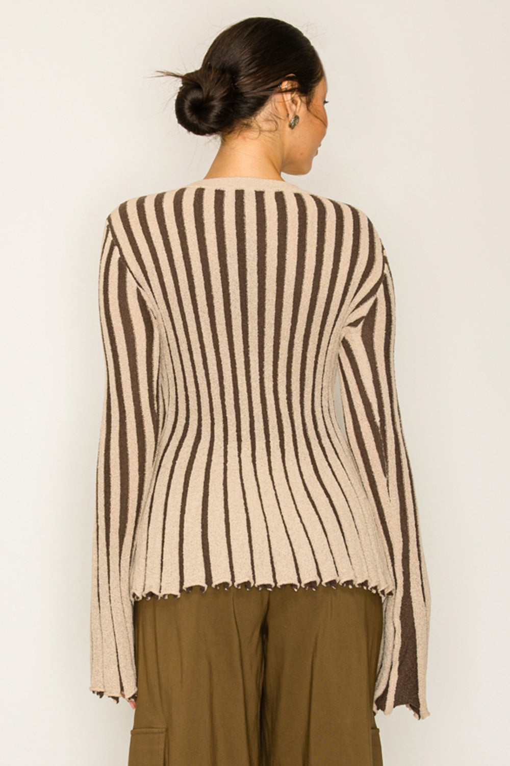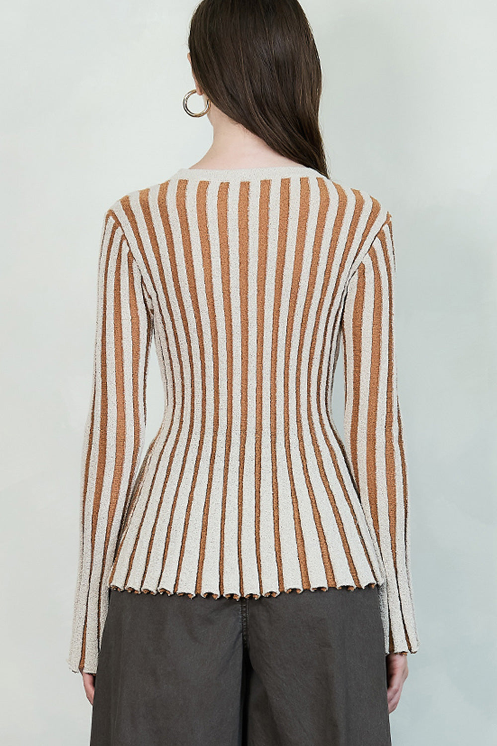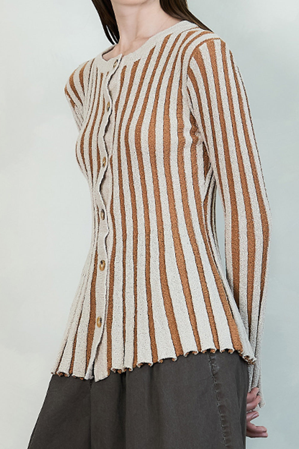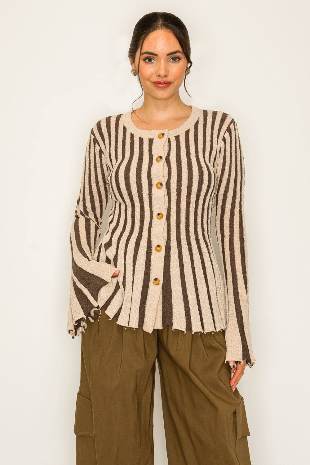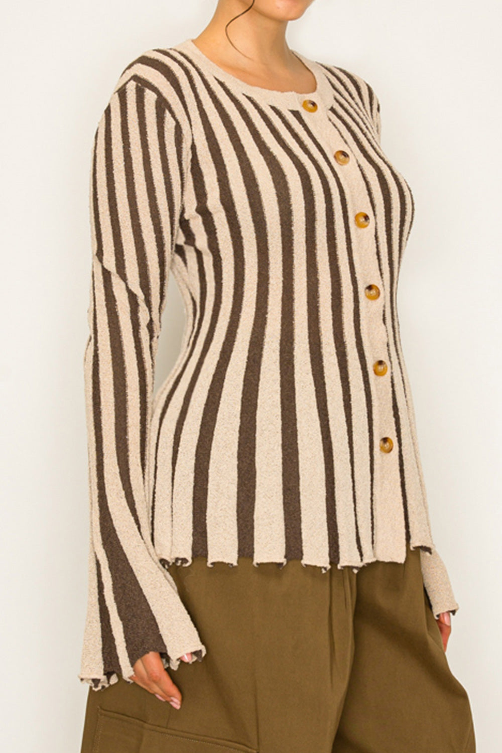 Stripe Textured Button-Up Knit Top (TOP ONLY)