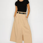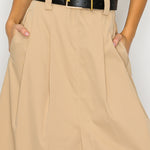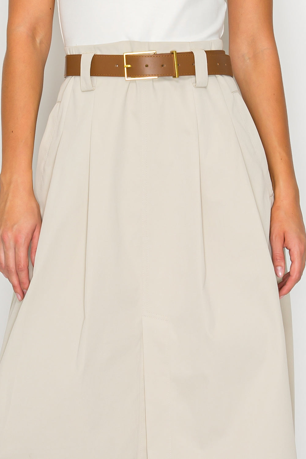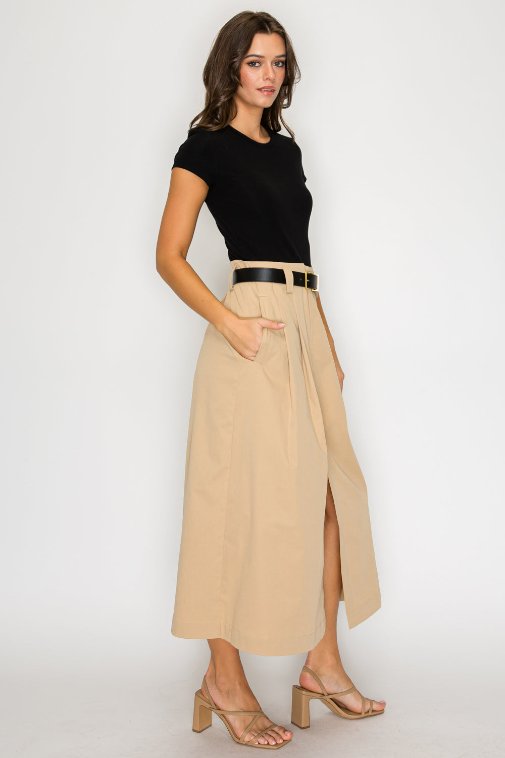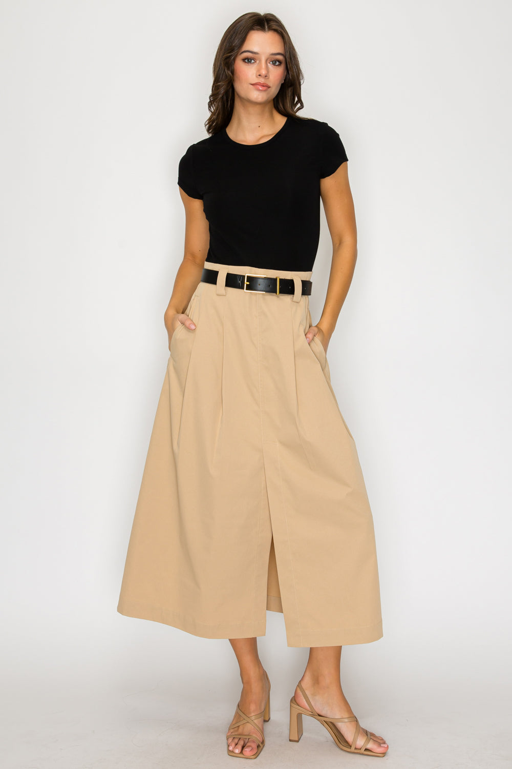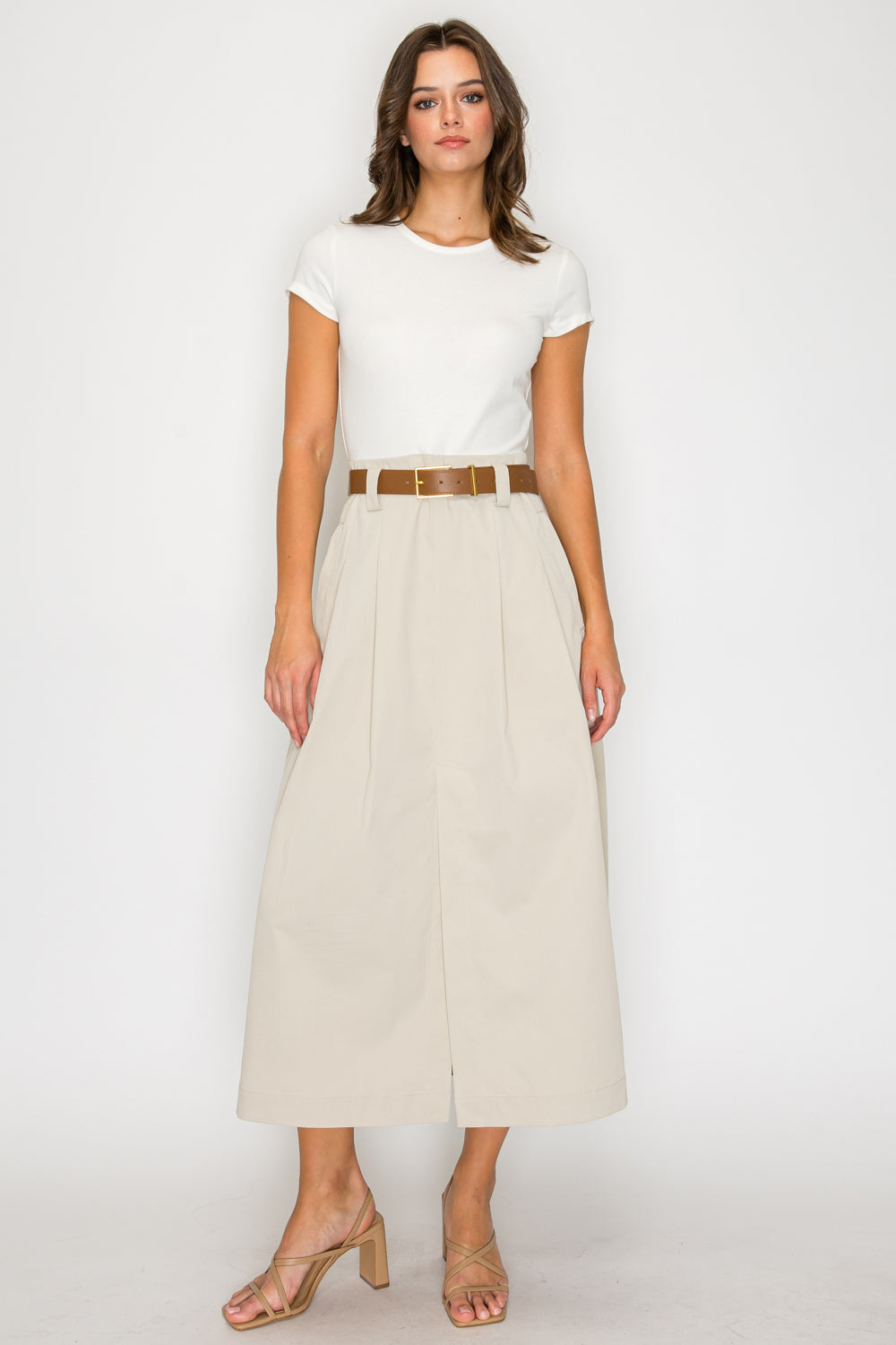 • Slim-fit top and flared midi skirt