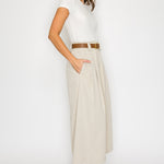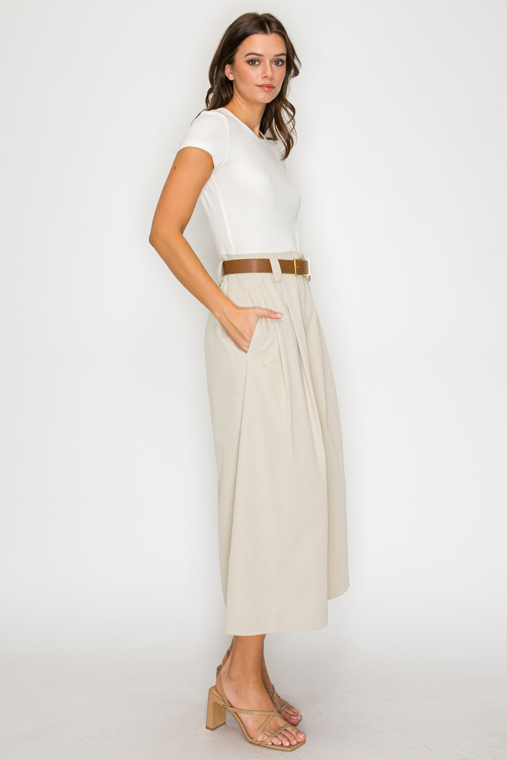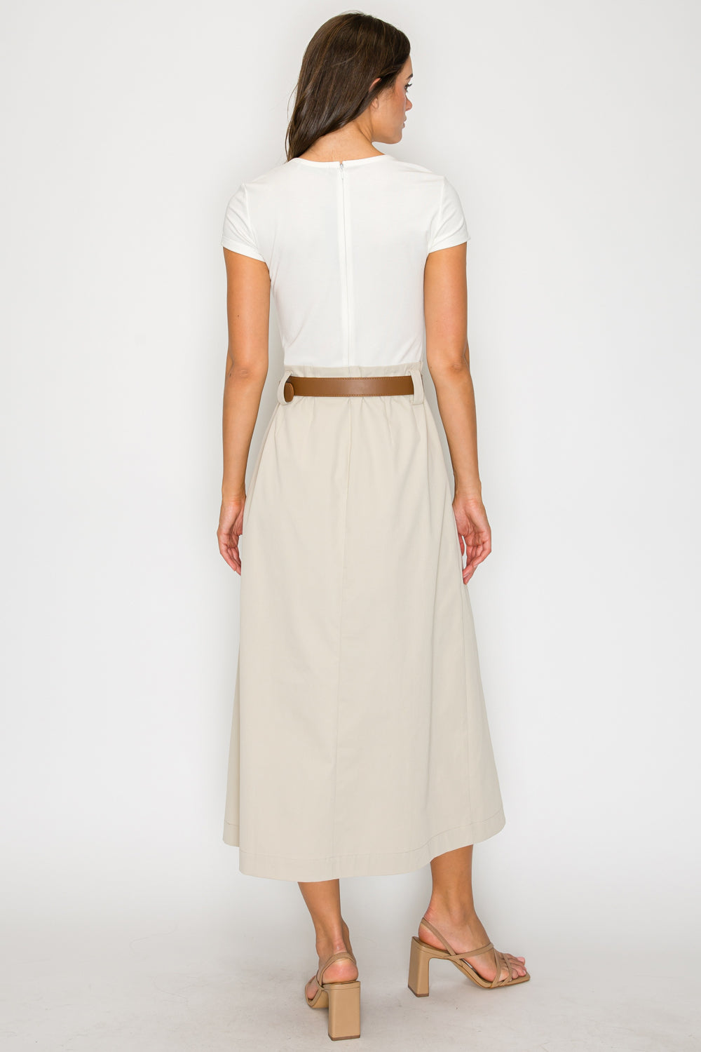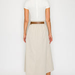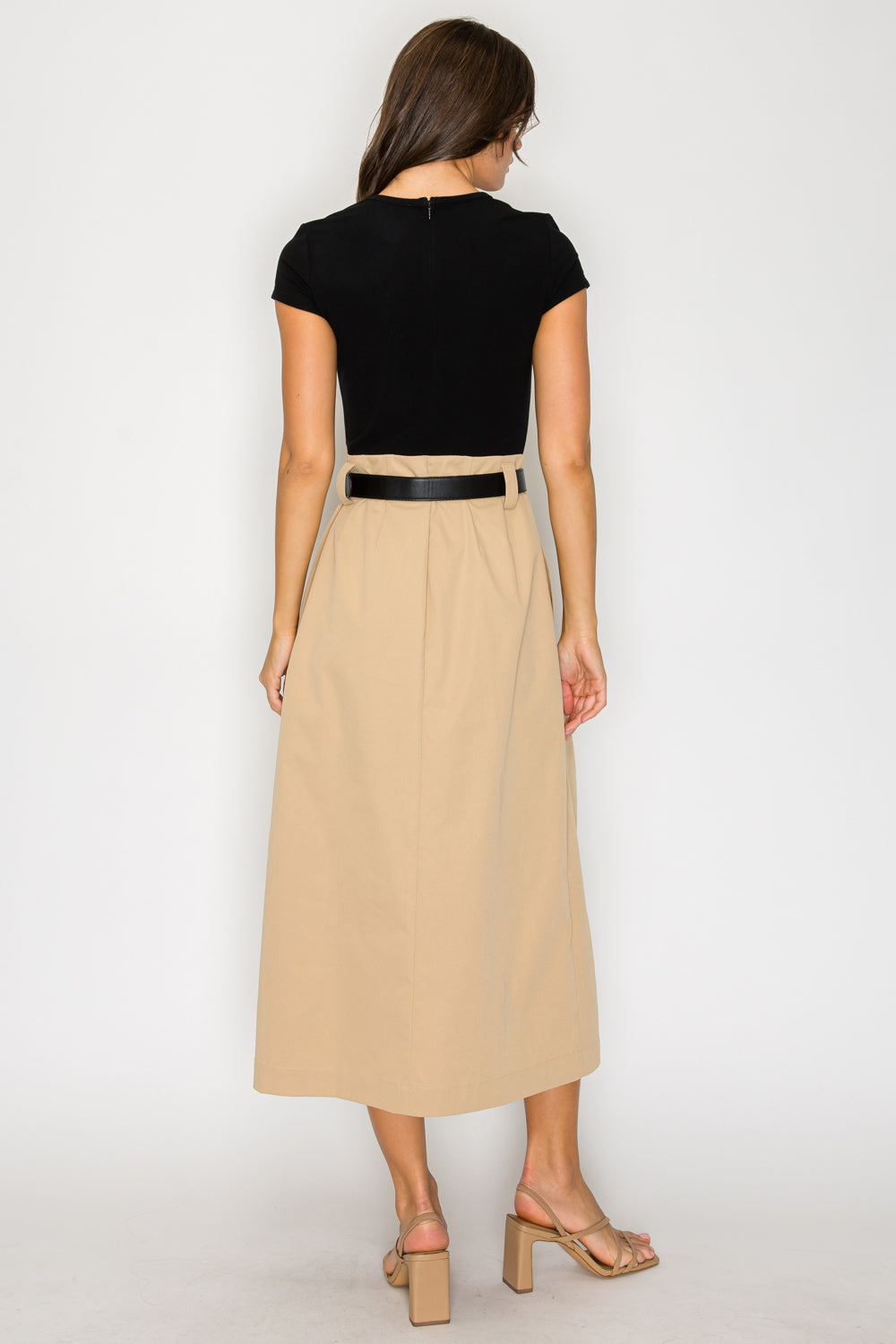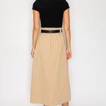 Two-Tone Knit Midi Dress with Belt